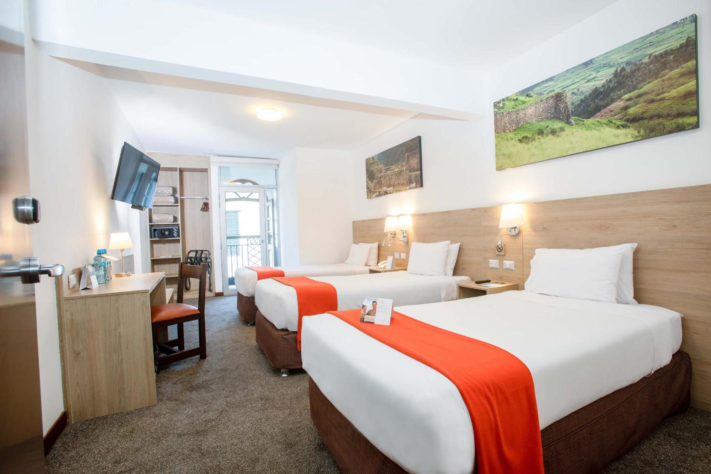 The en suite rooms at Casa Andina Standard Cusco Catedral offer a cozy retreat with modern amenities like a safe and cable TV. Wake up to stunning views of the Santa Catalina convent and the church of Compañía de Jesús right from your window.