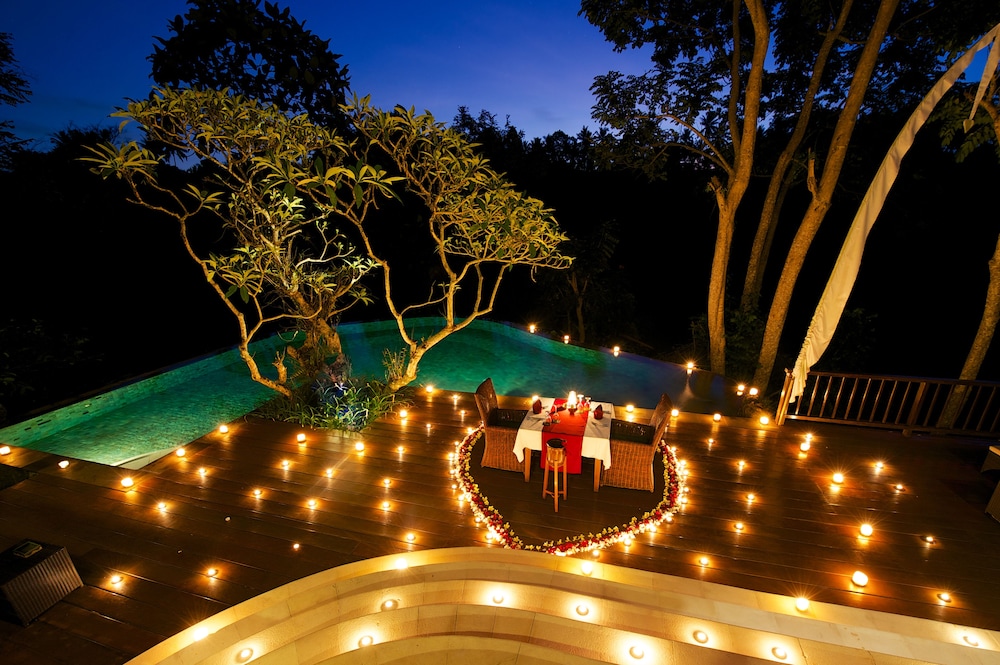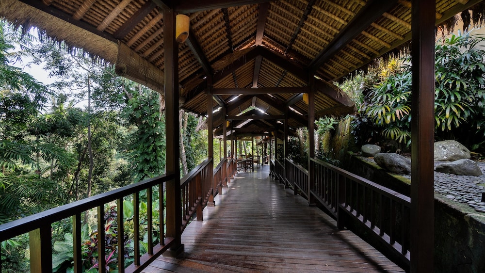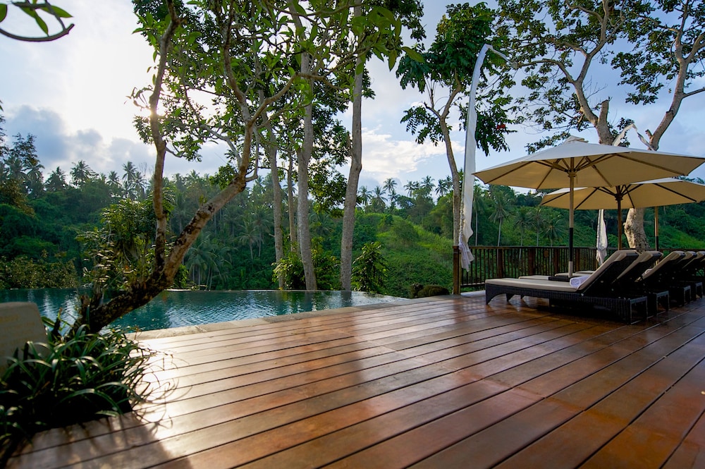 Pulling into the rather long random driveway and down to a small parking lot/lobby area was a little concerning to start with (keep an open mind at this stage) but once checked in and set off to find our room, was another mater entirely. This is a true jungle feeling property with the neatest villas with so much room (we had a villa with a private pool). We could not have been more happy. Big room with really big double sinked bathroom with an outdoor shower and it had an outdoor bath as well. We used outside shower instead of inside, it was such a cool experience. Downstairs we had our own private courtyard with a small pool and a very large day bed. The resorts infinity pool and area around it was absolutely spectacular. The in room and breakfast menus are fine, nothing spectacular but fine. It is a little way from main Ubud and couldn't be bothered with the traffic so were more than happy to hang about in our lush paradise and order room service.