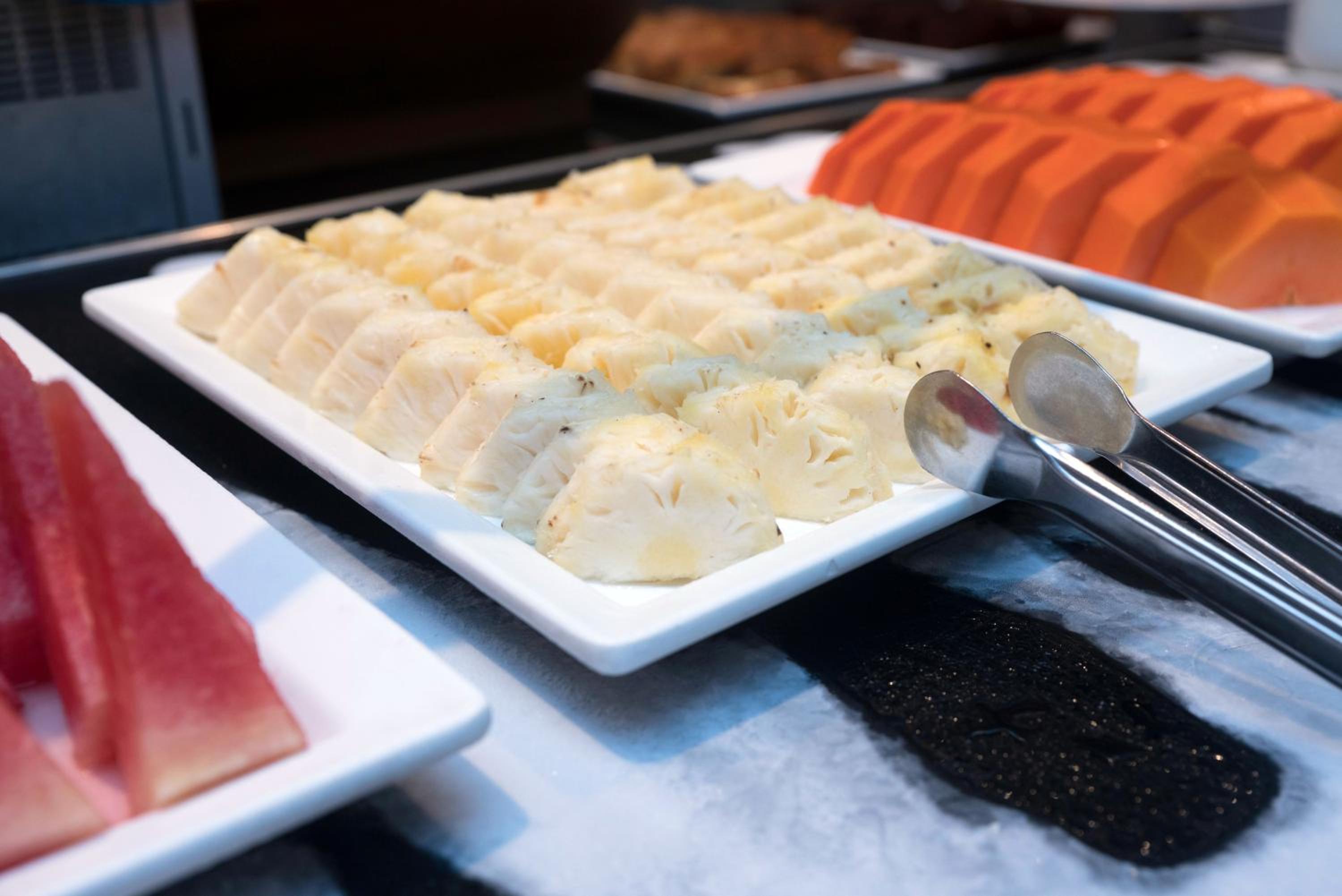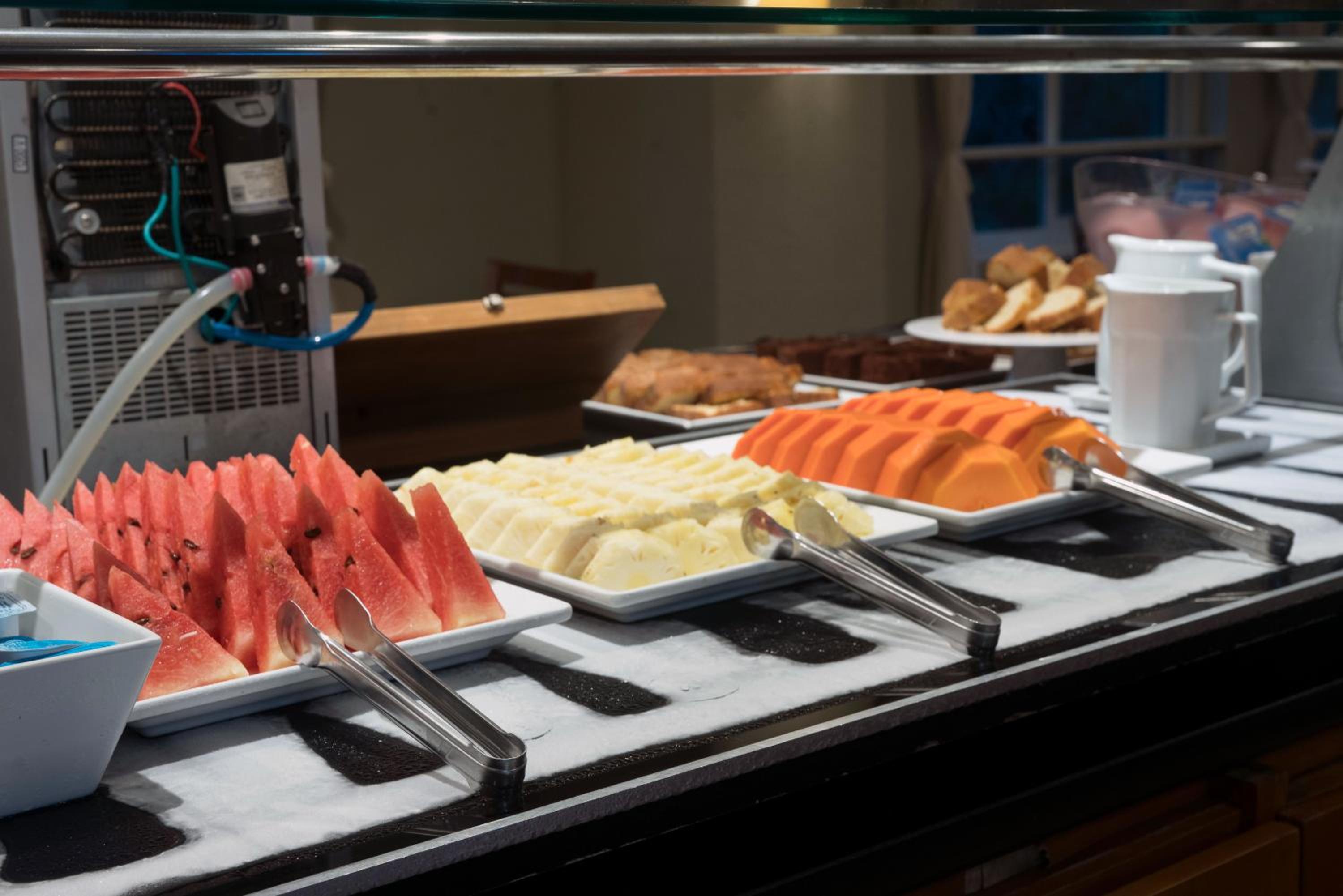 O café da manhã, as comidas quentes estavam frias, os bolos e alguns tipos de pães salgados não paraciam frescos, massas pesadas.