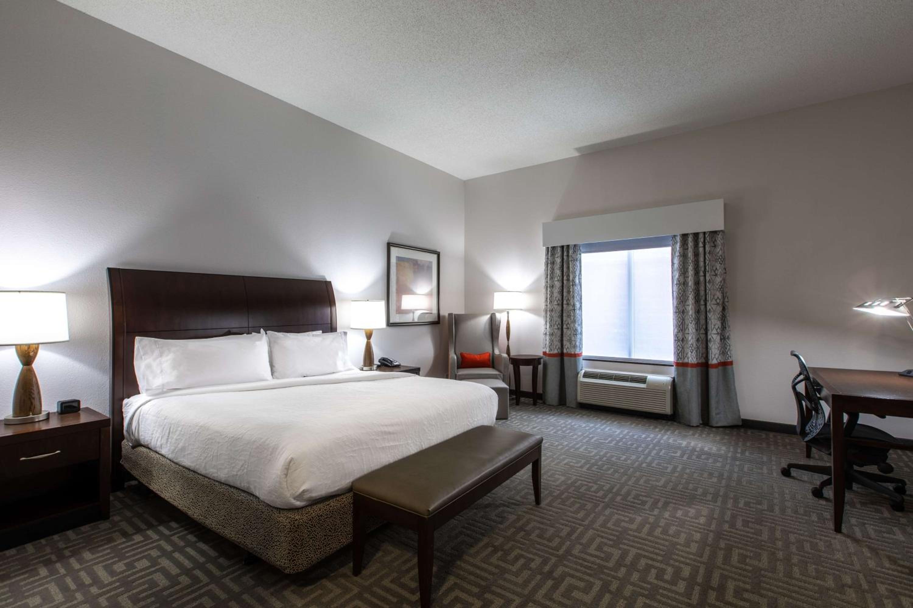 Enjoy the ease of complimentary shuttle service to local attractions and businesses, along with access to a 24-hour business center and a modern gym. Indulge in delicious meals at The Great American Grill, grab a drink at the bar, or pick up essentials at the convenience store.