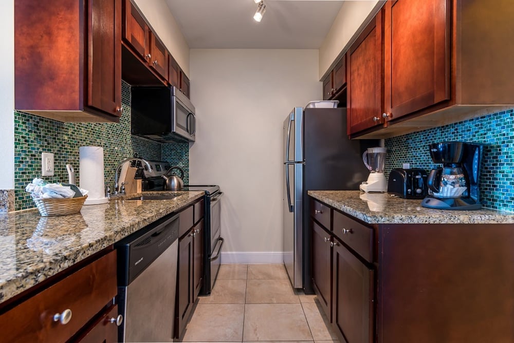 Each of our 77 beautifully decorated guestrooms features kitchens with refrigerators and stovetops, perfect for preparing meals. Enjoy entertainment with 40-inch flat-screen televisions while staying connected with complimentary wireless internet access.