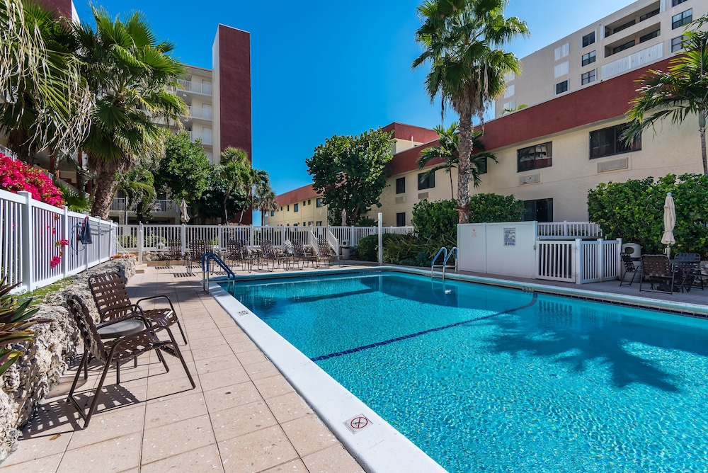 The property is very well maintained. Room, pools, fitness center, restrooms, showers, sauna, and elevators are very clean. The property is about 50 steps from the beach.