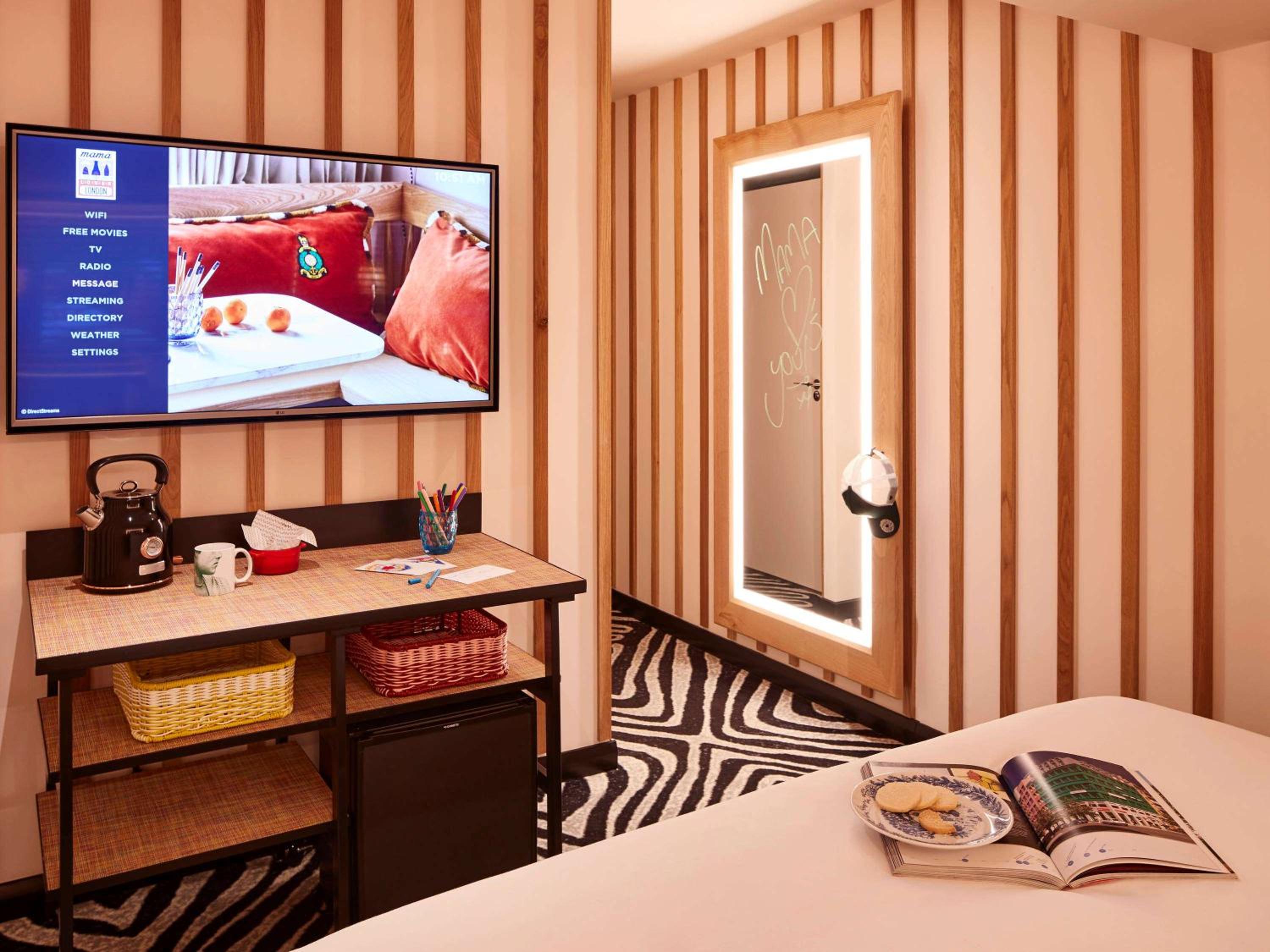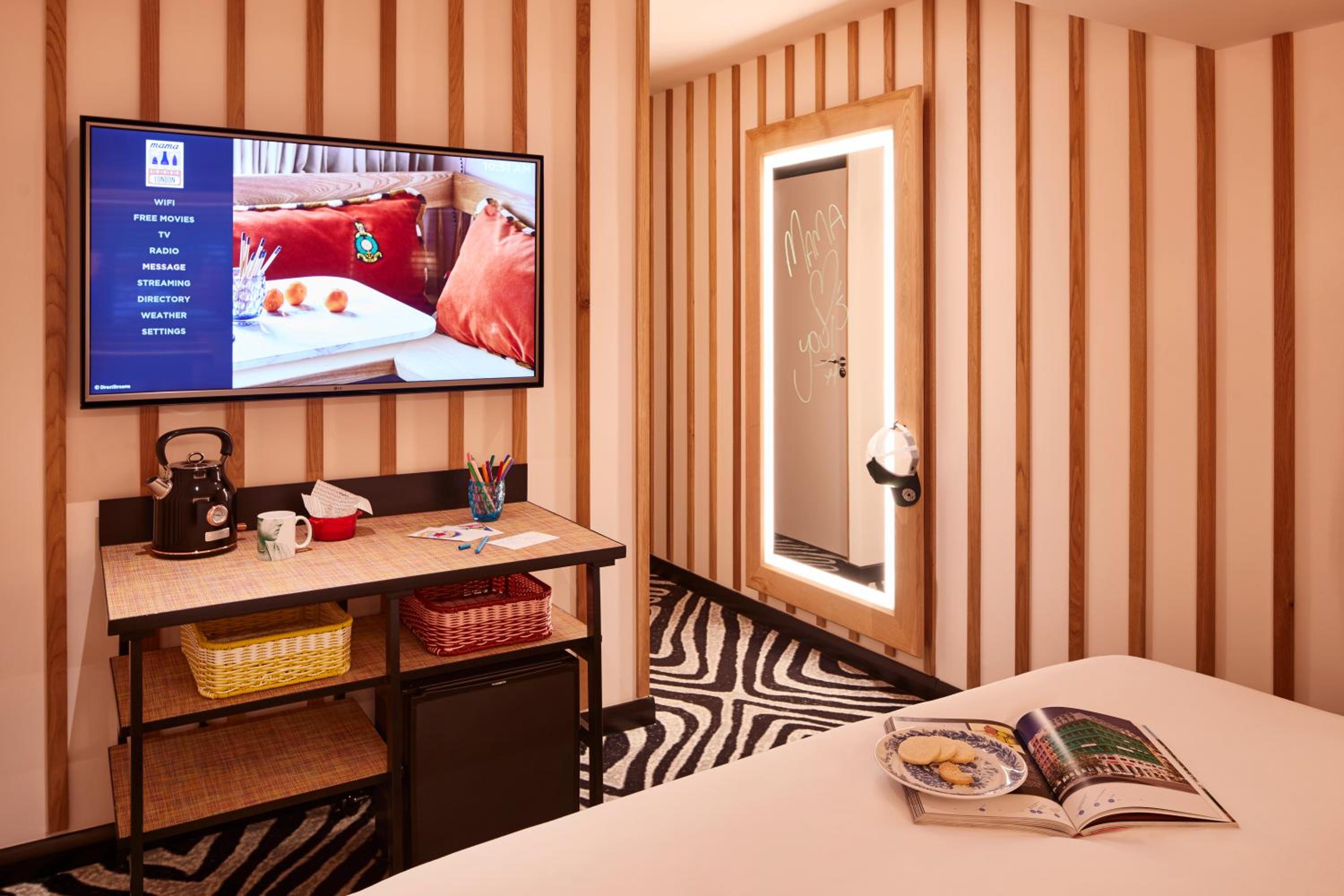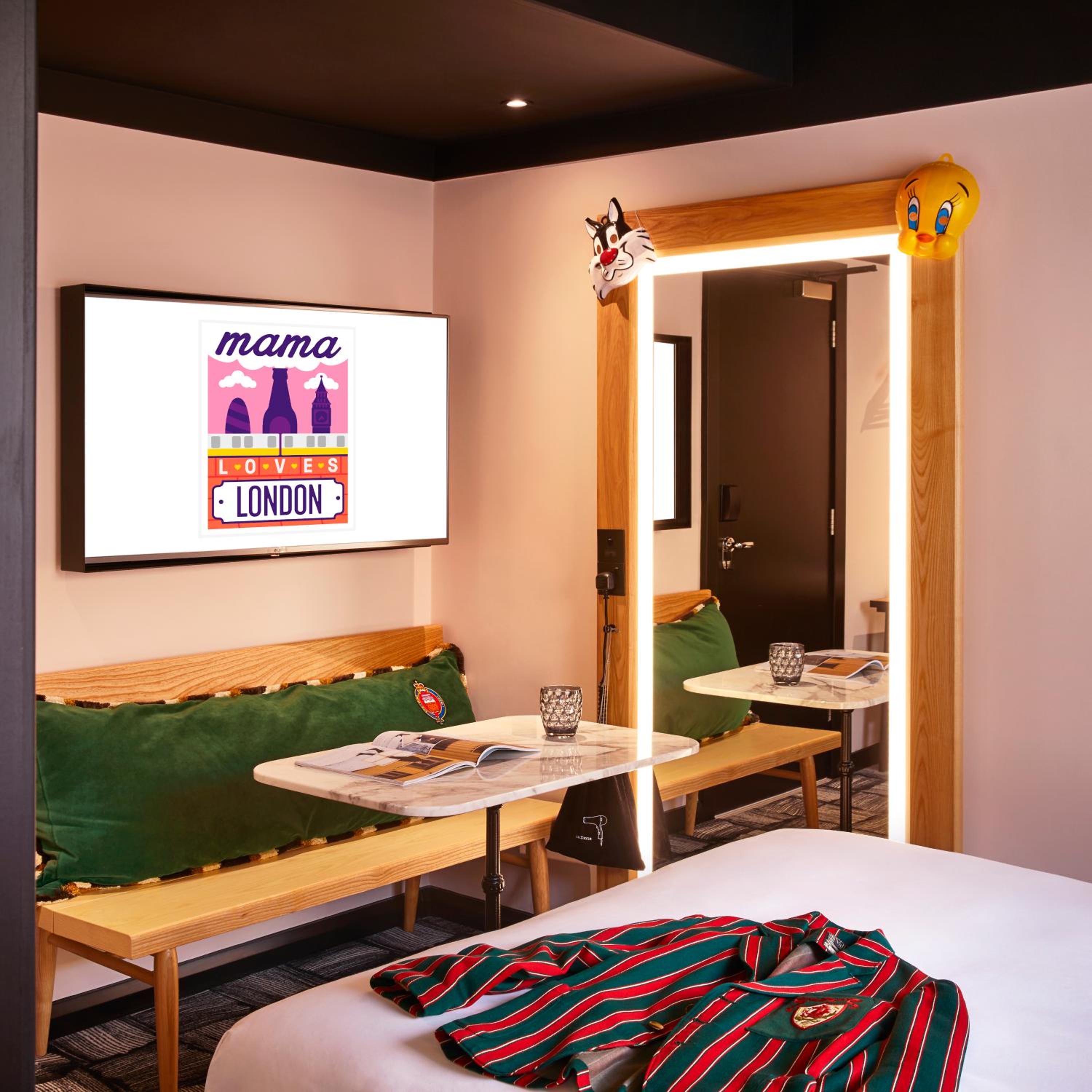 Mama Shelter London offers modern and stylish rooms equipped with free WiFi, air-conditioning, and on-demand movies. Each room features a private bathroom with complimentary toiletries and a hair dryer.