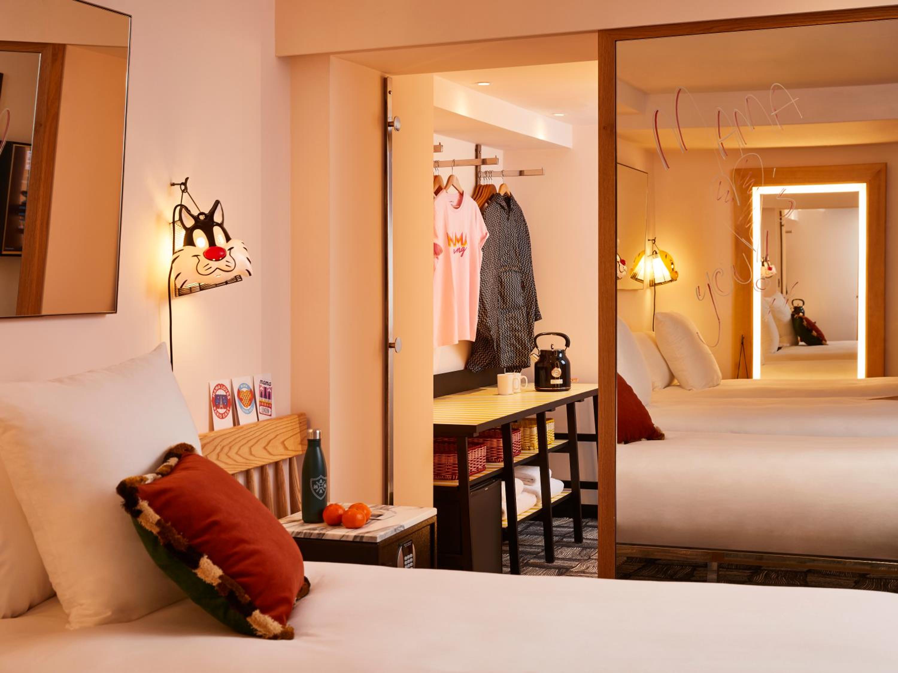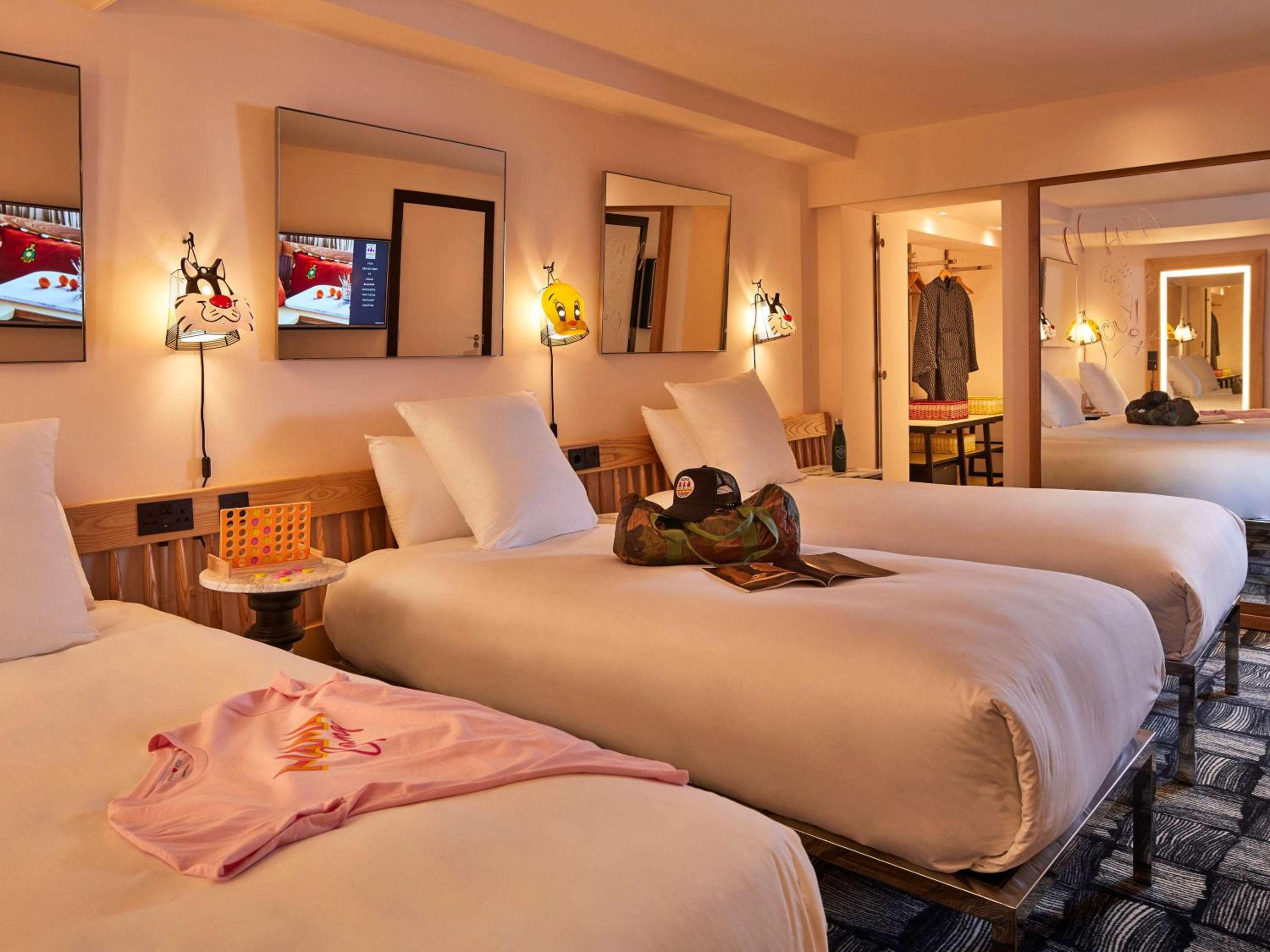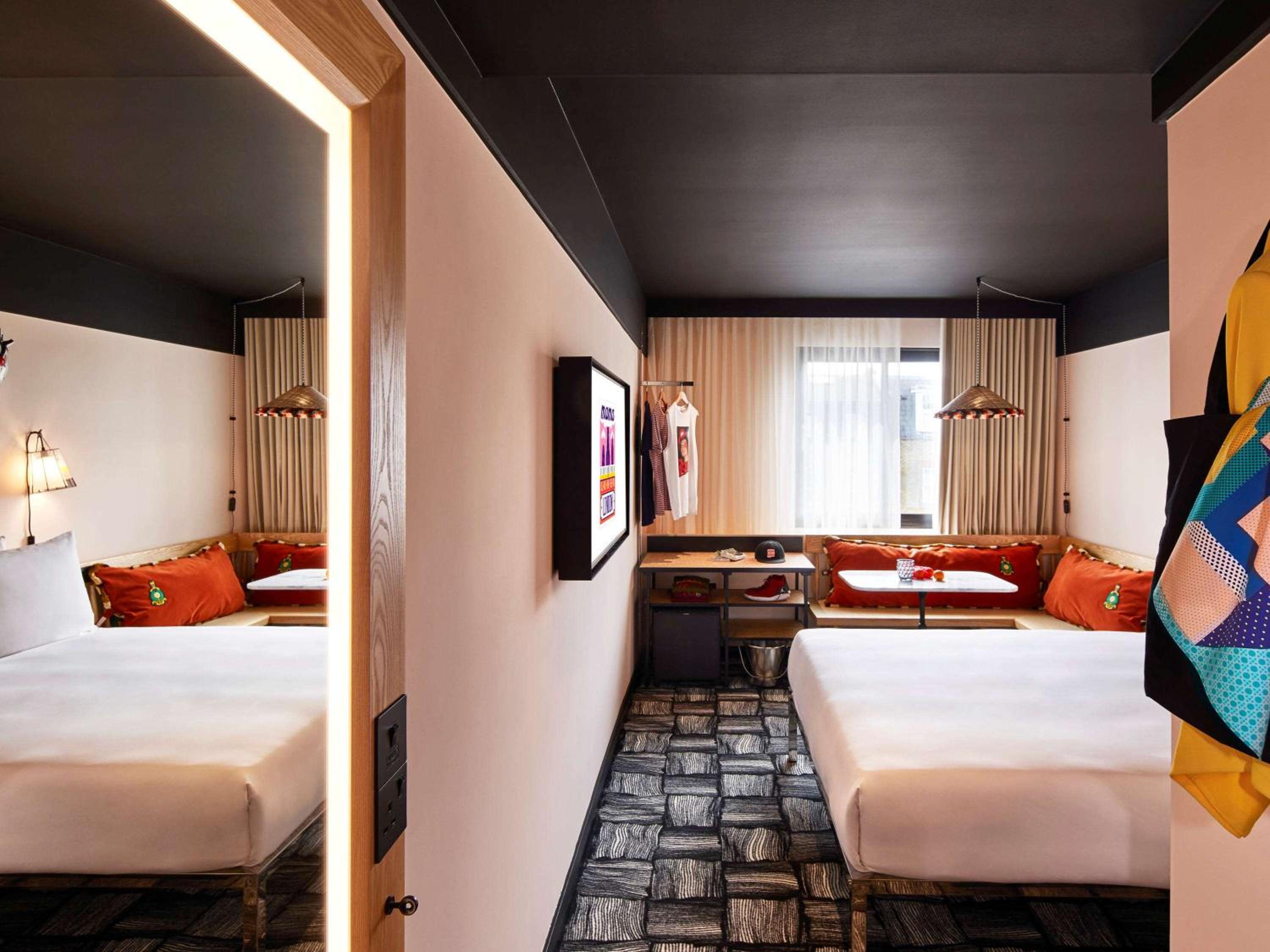 Mama Shelter London offers modern and stylish rooms equipped with free WiFi, air-conditioning, and on-demand movies. Each room features a private bathroom with complimentary toiletries and a hair dryer.