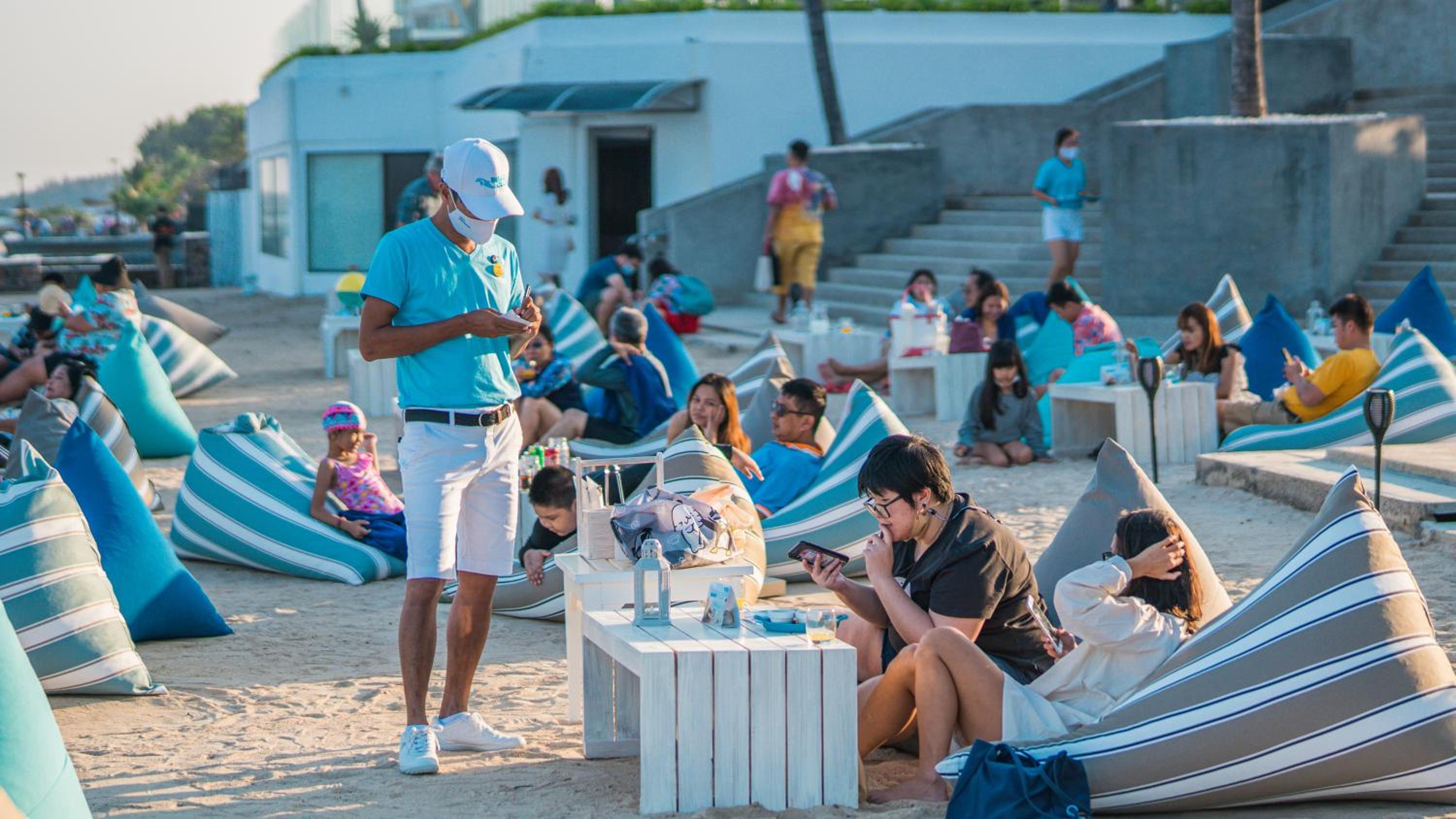 1.在这一大片区域,沿着一条主公路,从小路进去1至2公里到达靠近海边的各个酒店。在这个情况下,这个酒店门口有711,有几家餐饮,有马杀鸡,还算是比较方便。