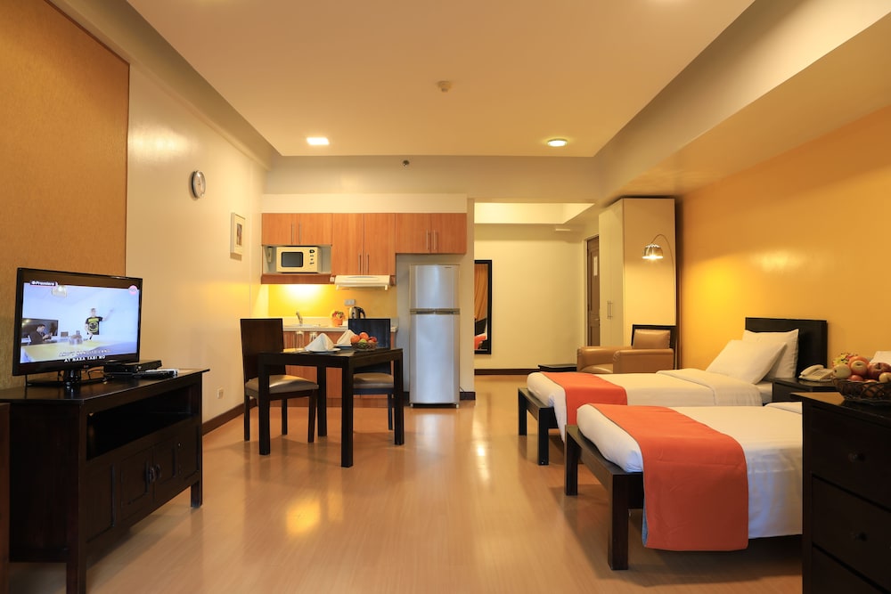 Location is great. It’s close to malls which makes it convenient. People are helpful and friendly. We had internet issue on our 2nd week of stay but they were quick to respond. They have buffet breakfast as well with great options.