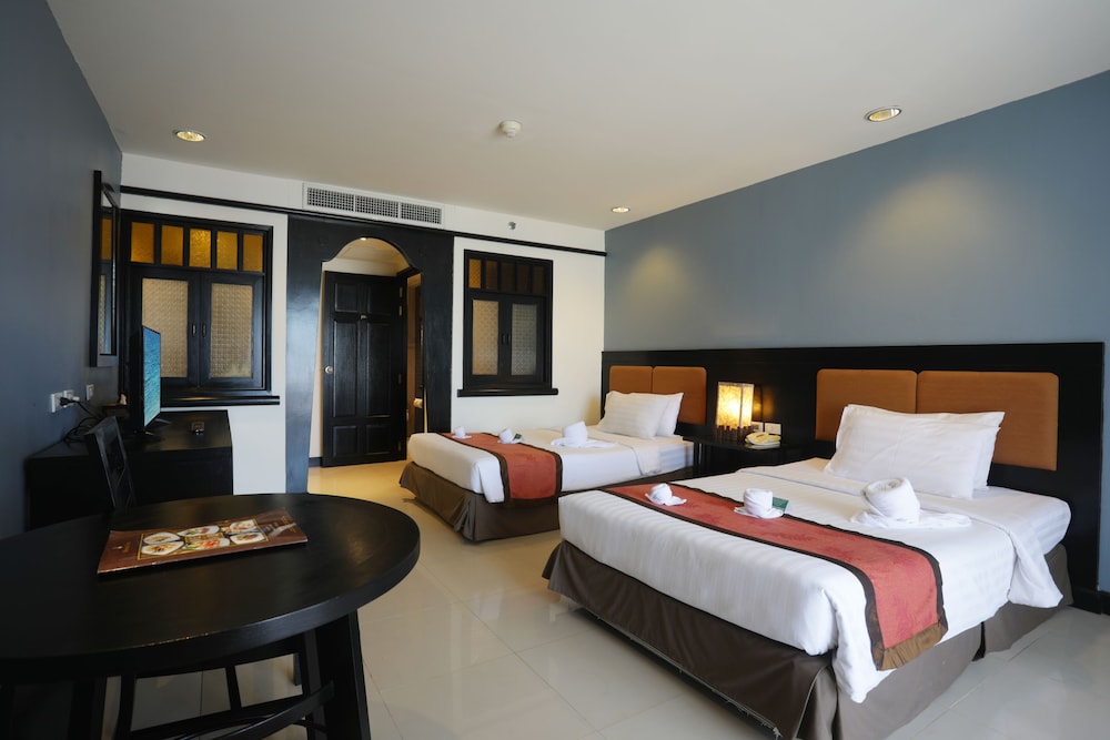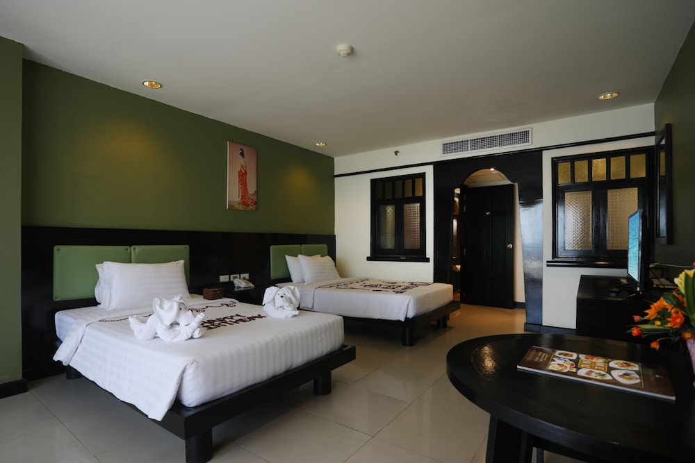 Great location situated on the main road with the beach just across the road where sun-beds are plentiful on the beach and only BHT200 for 2 beds and a parasol(£5) for the day. The hotel is very well run and staff are very professional and so friendly. The whole place is spotlessly clean - our room was huge and had 2 large beds in it- the room was kept to a very high standard. So quiet on a night. Nice fresh towels, toiletries (shampoo and shower gel) and all the little extra things you might need, slippers & dressing gowns. 2 small Bottles of Water provided every day including Tea/coffee - Kettle, hairdryer, fridge with freezer section to make ice, free security safe in room, TV. Pool towels are provided and can be taken to beach. There is not much to watch I’m afraid for English folk - only a couple of news channels. Free Internet - hotel and pool bar - as our room was nearer the pool bar we found this internet to be best. Our room was facing the pool and had a decent sized balcony - not much privacy though as all the rooms look onto each other - the garden/pool area seemed tight for space and the sun beds were heavy and could t be moved - pool didn’t seem to get much sun due to the trees/ foliage but we prefer the beach anyway. They play some good tunes round the pool. Didn’t use the pool bar as heard it’s expensive but there is a 7/11 supermarket next door so fill your fridge up. There are items: snacks/beers in the room/fridge chargeable if you use them. Room service is available at a 10% service charge which is nothing and we did use this the day of our very long trip out to phi phi island as we were so tired to go out - the food was lovely. We recommend the pizza. You are able to smoke on your balcony too. (Strictly no weed). There is a table tennis table and supposedly a kids club but never saw or heard it. Not a lot here for small children. We had breakfast included served 7-10.30am. The egg station was the best - lovely omelettes done as you wait and at least you had something hot, as I found most of the food to be cold when we went in at 9am. So get up at 7am I guess to get your food hot. Toast, omelette and fruit was my way to go, the rest didn’t quite do it for me. Beach has lovely soft sand and is pretty clean. There are beach sellers offering their wares but a simple ‘no’ and they leave you alone. There is parasailing on beach too - BHT2000 per one person I was told. BHT3500 for 2 together. Overall, a very nice hotel and I would definitely recommend it and stay again.