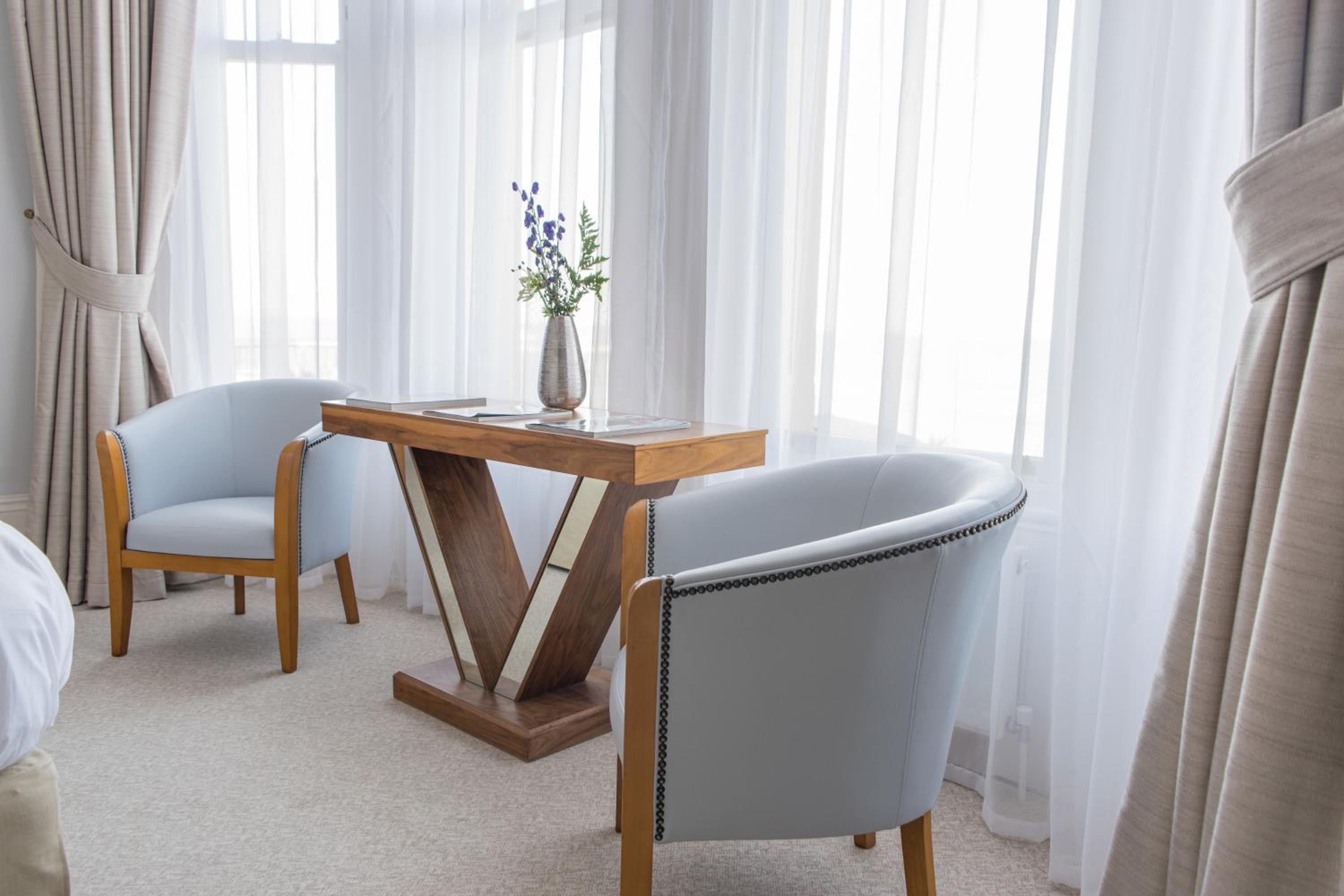 Experience the charm of The Chatsworth Hotel with spacious rooms featuring elegant marble bathrooms, smart TVs, and picturesque coastal views. Indulge in the opulence of our Junior Suites with a double jacuzzi and walk-in shower for the ultimate relaxation.