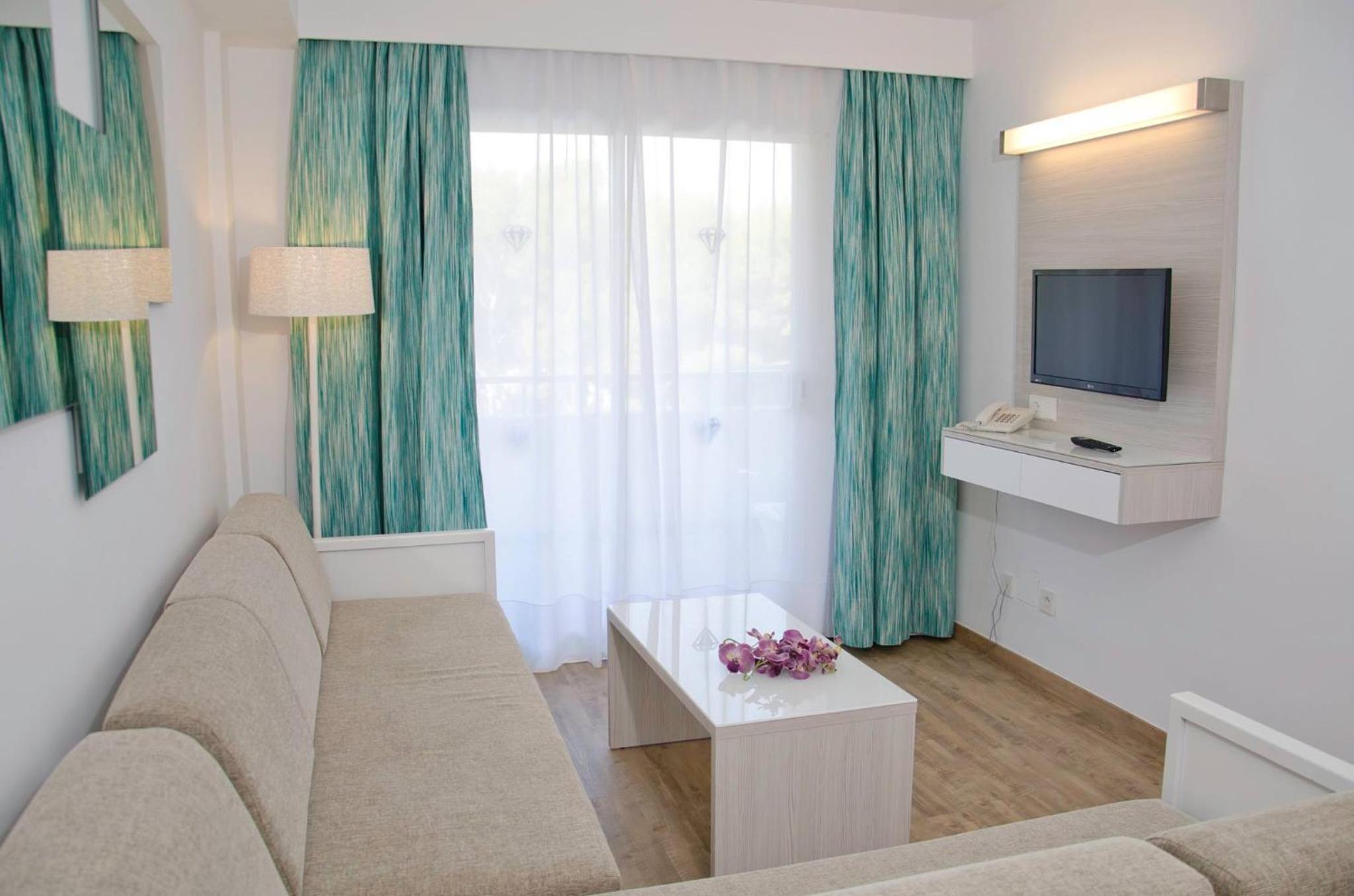 Hotel Diamant offers beautifully decorated air-conditioned rooms with Mallorcan-style décor, each equipped with modern amenities including a TV, private bathroom, balcony, and free Wi-Fi access.