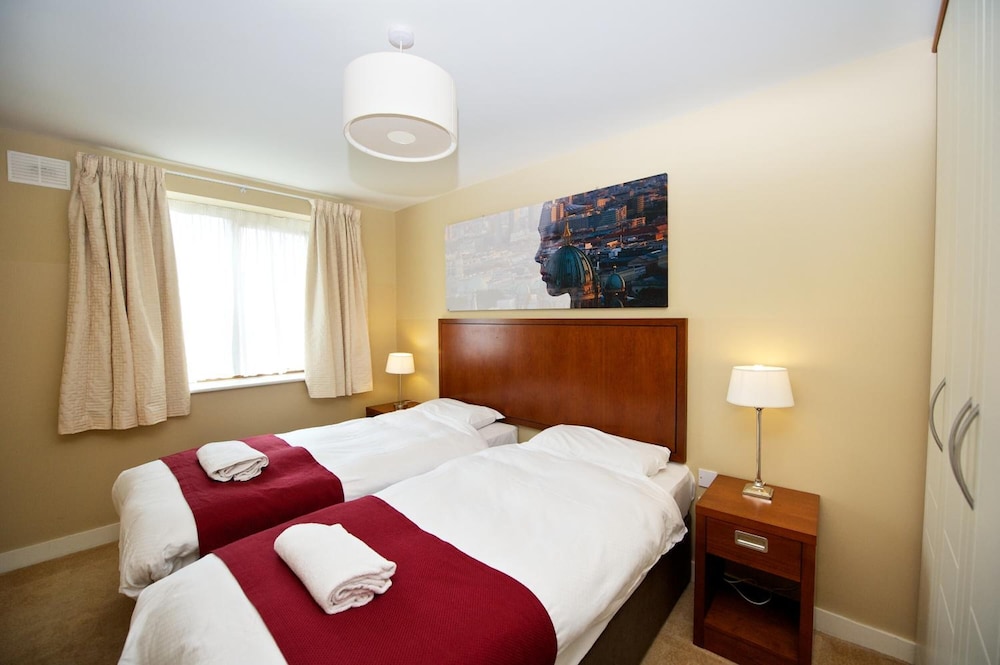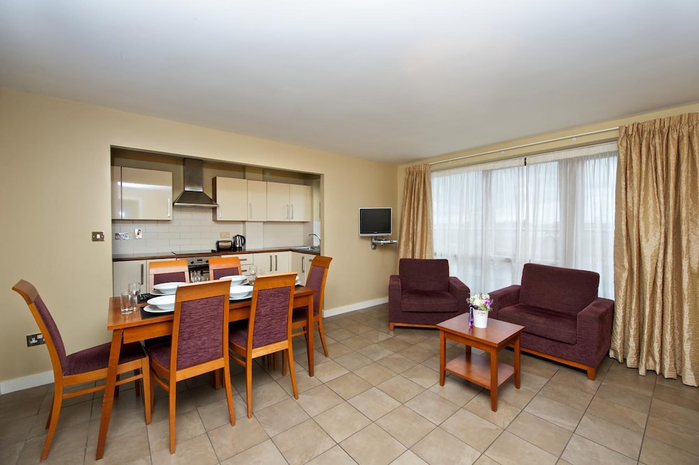Exceptional apartment hotel in Ushers Quay, steps from the river and numerous pubs/restaurants, half hour from the airport and Dublin Port. We had a 3 bedroom apartment for 6 adults with fully stocked kitchen to make homemade meals. Highly recommended.