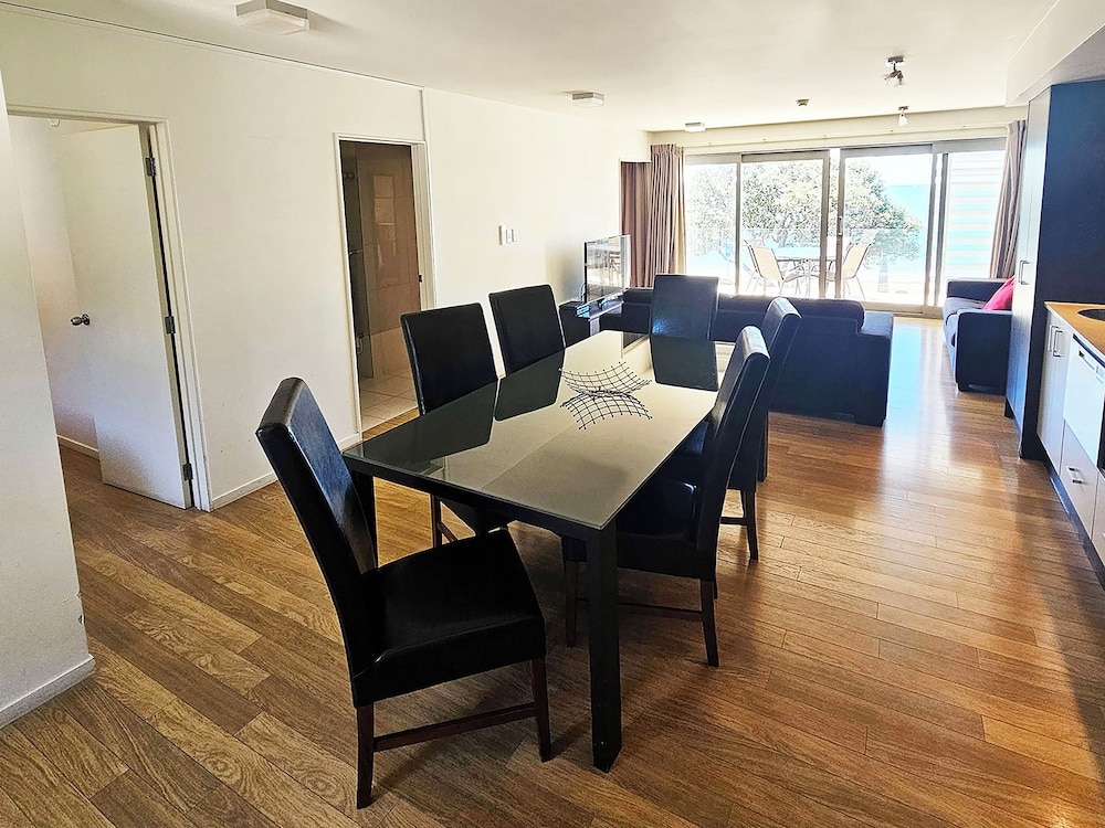 Great place - we got the 2 bedroom suite. The balcony view was amazing, the kitchen with a full sized fridge freezer was very useful to us as we were travelling with kids. The beds were comfortable and the parking below was very easy to use. The suites are almost on the beach, a 1 min walk away from the playground and a takeaway, 3 mins walk to the woolworths and a 3 minute drive away from the other cafes, restaurants and the ferry.