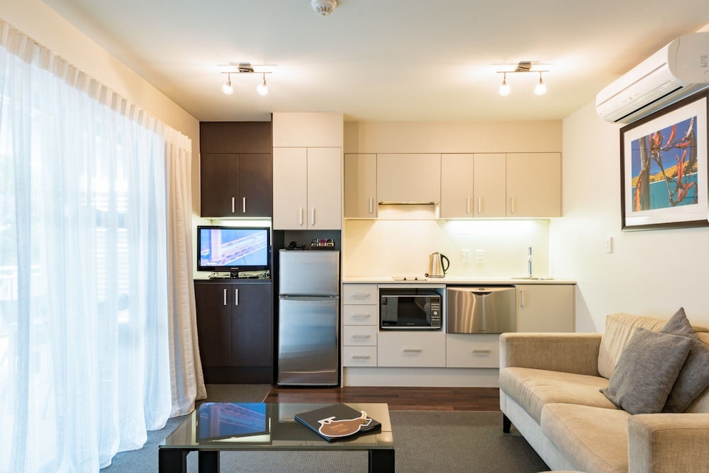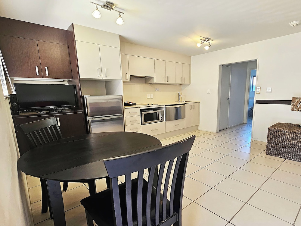 Friendly and helpful staff. Good location facing the beach, easily walkable to Paihia town and wharf, also Whitangi Treaty Grounds. On the downside, some noise from the petrol station adjacent to the property. The room was well-equipped, and daily room servicing was excellent. However, the room fixtures and fittings e.g. wooden tables, chairs, kitchen units, bathroom sink, shower unit are showing their age, scuffed and looking well-worn. As it stands, it offers fair value for money, but it would benefit from a makeover.