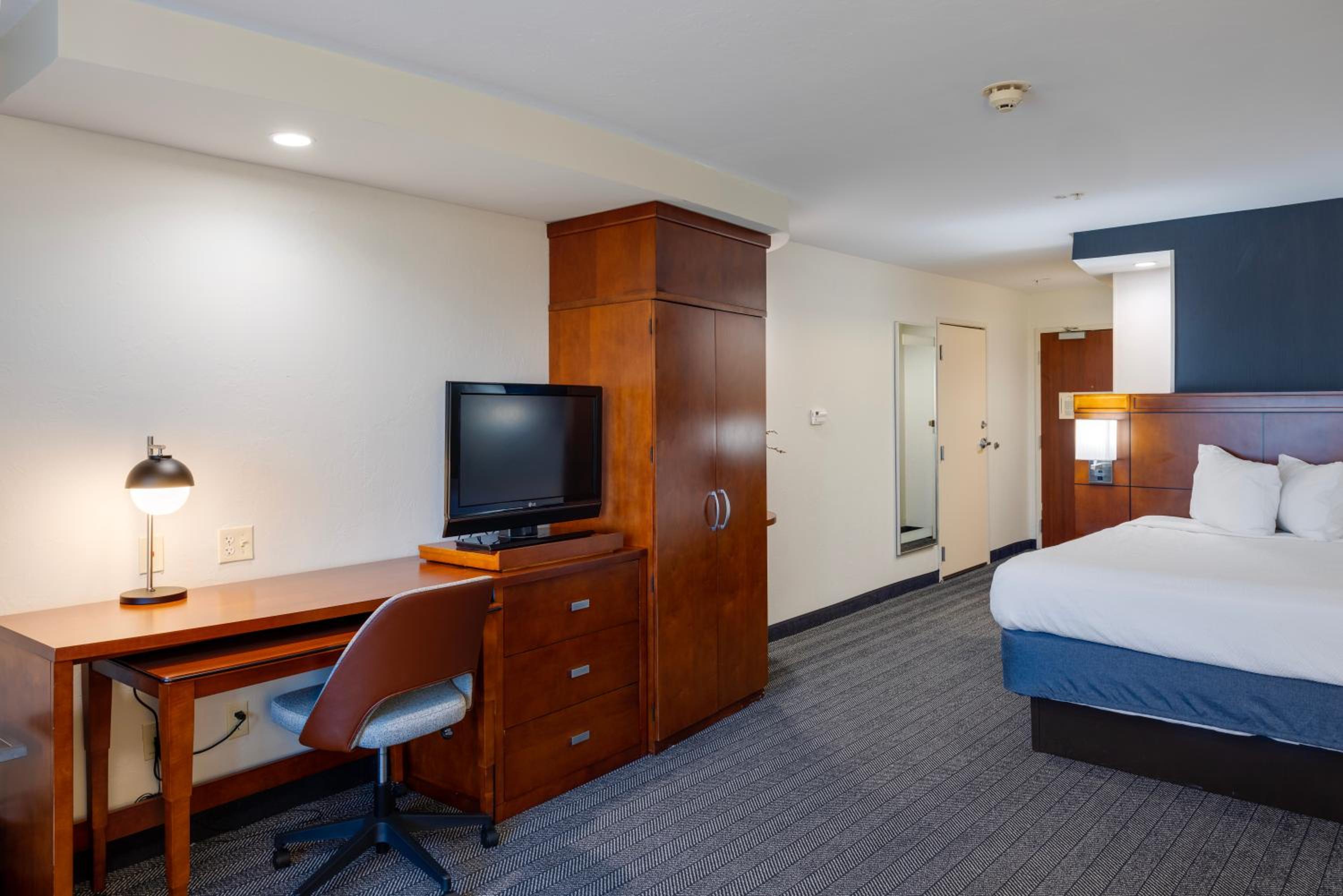 The Courtyard by Marriott Oklahoma City North/Quail Springs offers a comfortable stay with 32’’ flat-screen TVs, iPod docking stations, and free high-speed internet in every room. Relax in the indoor heated pool and hot tub or catch up on work at the spacious desk with an ergonomic chair.