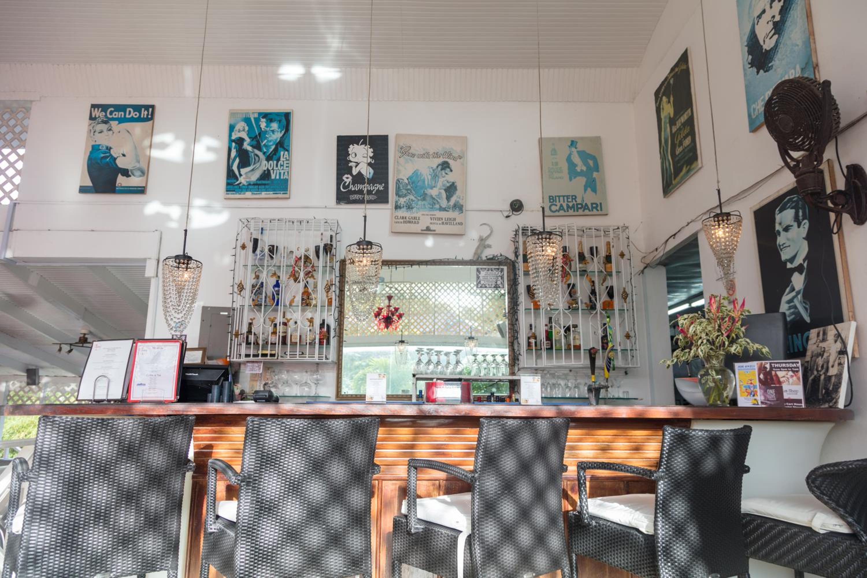 The breakfast was underwhelming. The dinner was better, but no drink included in dinner - not even a bottled water is absolutely absurd. Huge shellfish focus on the menu. One night both starters had shellfish. Consider that shellfish is a common allergen and perhaps have a regular fish option, chicken or veggie option also. The room and facilities in general NEED to be renovated - from the tiles on the floor in the room to the bathroom fixtures. The headboard of the bed is a dust/allergen magnet and greater attention needs to be paid to it. I couldn't stop sneezing until I narrowed it down and asked Melissa to clean it. There were lots of stray cats on the compound and I wondered if that was a factor, as well.