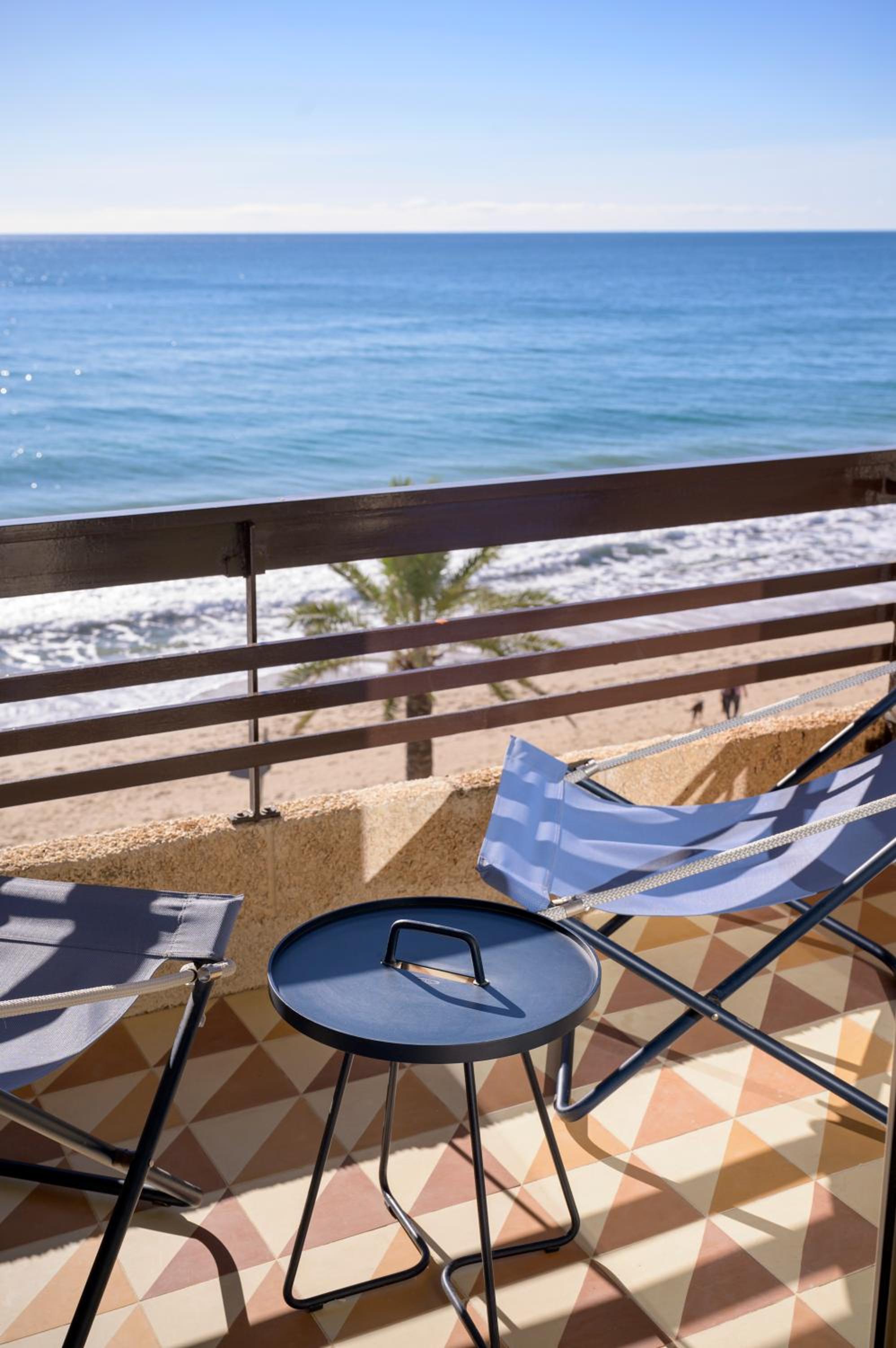 Está justo encima de la playa. Cuando sales al balcón ves el mar abajo de tus pies. Una playa larga llena de vida. Precioso