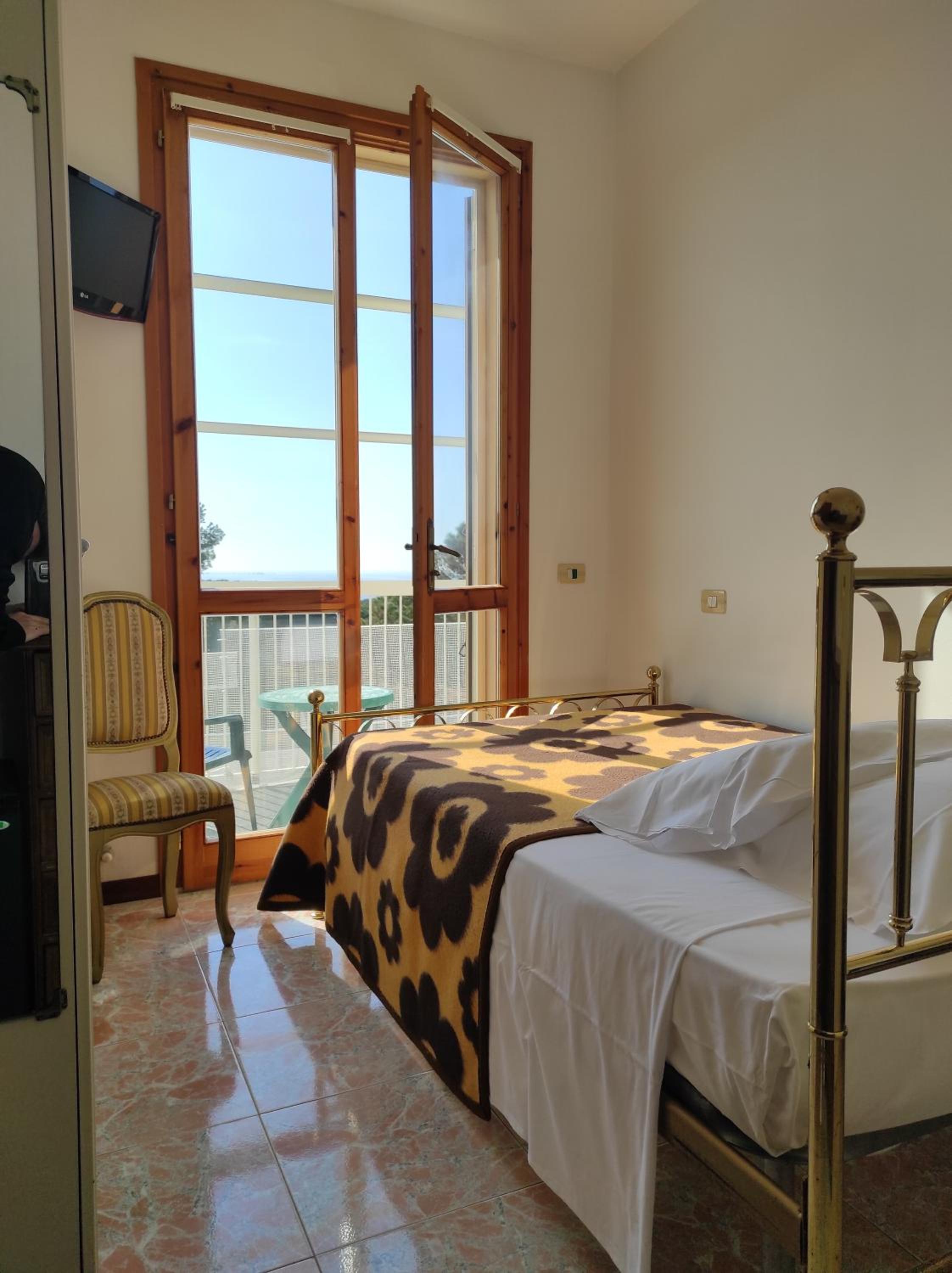La stanza singola che ho avuto era veramente minuscola e aveva un letto e un arredamento un po’ desueto.