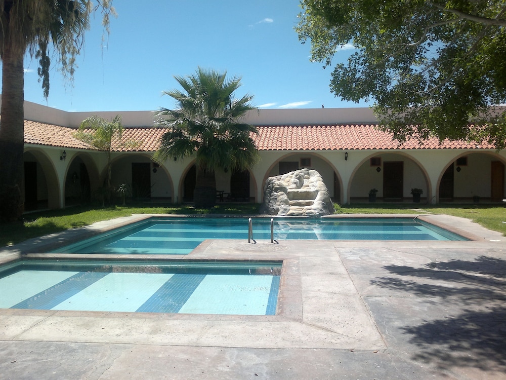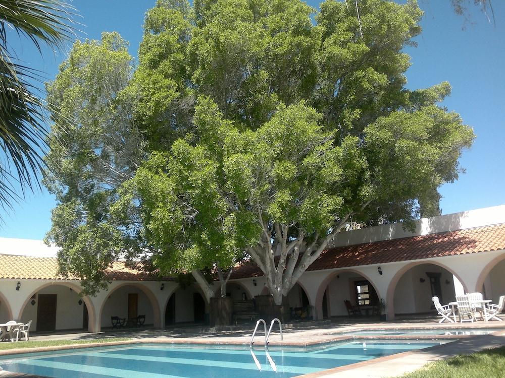 Classic hacienda style hotel with pool, bar, restaurant, and exceptional geography and grounds.