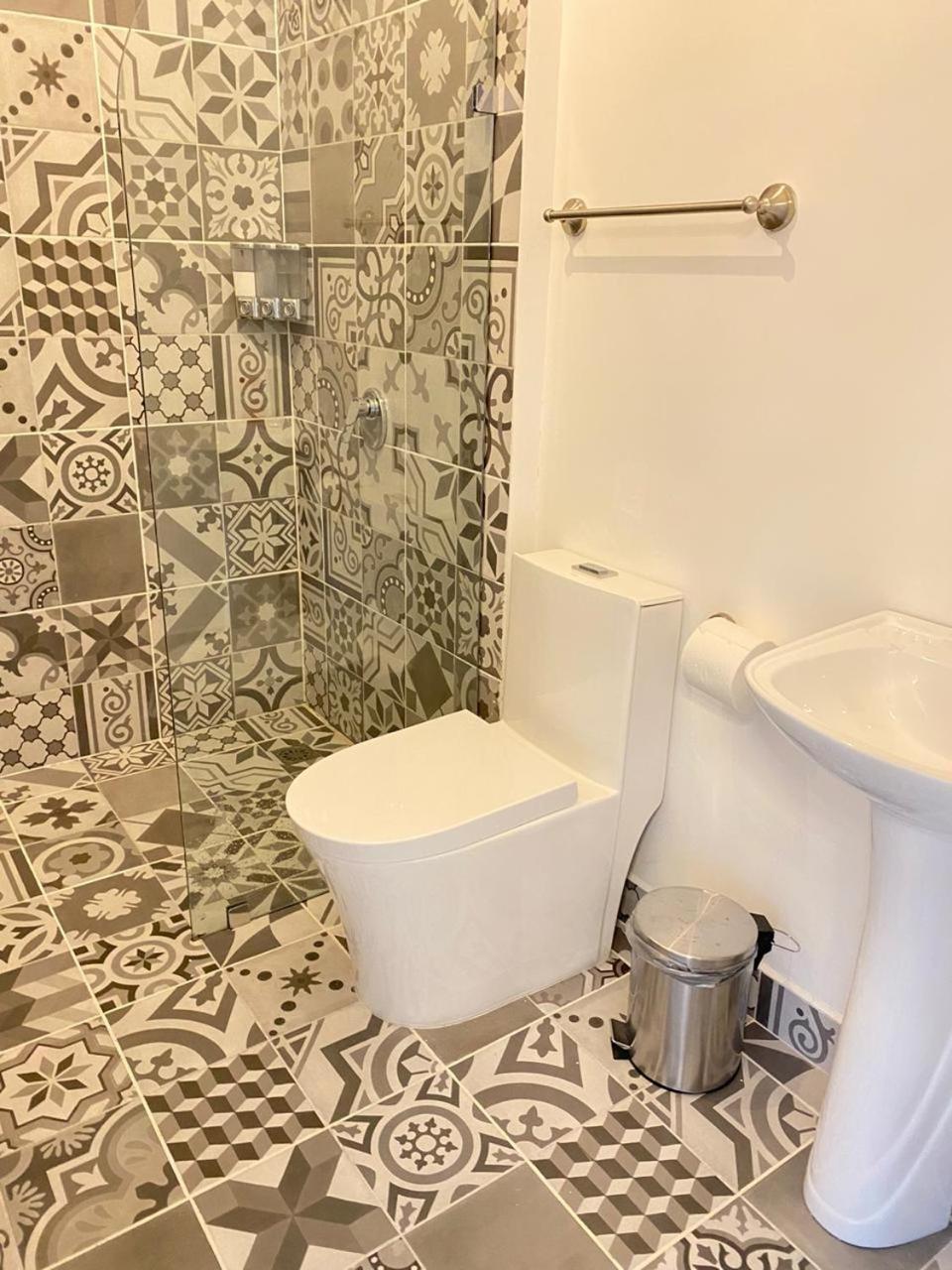 - mini wastafel, geen ruimte om tandenborstel neer te zetten