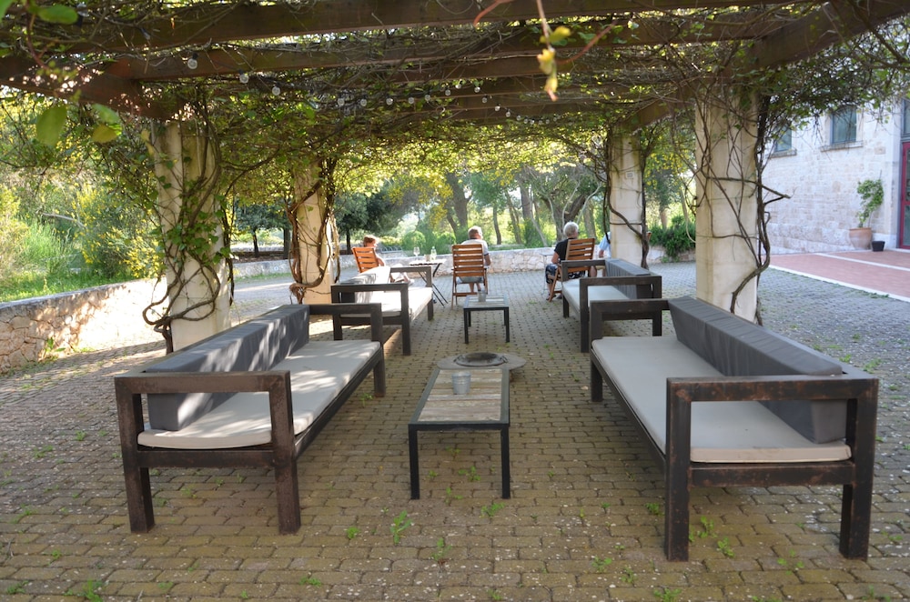 Bon accueil- chambres confortables, mais pourraient être rafraîchies ,le miroir de la salle de bains date un peu....Belle campagne autour de l'hotel, champs d'oliviers-belle piscine-jardins et aménagements alentour de qualité-terrasses, tonnelle, vélos à disposition-amabilité et gentillesse de tous les membres du personnel-grande souplesse pour répondre aux demandes particulières-restaurant convivial, carte locale, bon rapport qualité -prix- dommage que le petit-déjeuner ne comporte pas de produits locaux de base comme ricotte, prosciutto crudo, salade de fruits frais, fromage italien en lieu et place d'emmenthal...., mais le café est excellent!- l'endroit est central pour explorer les Pouilles en voiture, entre Trani et Lecce- l'endroit est un Mémorial historique en tant que camp de travail pour les juifs emprisonnés durant la 2° guerre mondiale- c'est une Coopérative Sociale qui supporte ce Resort voué à un développement culturel ultérieur, cela explique sans doute l'ambiance cordiale qui y règne- nous y retournerons et le conseillerons sûrement!