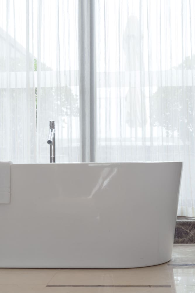 My initial 1 King Classic Ocean View Room has a total space of approximately 400 square feet and includes a bedroom, bathroom, and closet. The main highlight of the room is the stunning view of the CBD skyline, the Olympic Sailing Plaza, and the East China Sea. While the design of the room is appealing, it is showing signs of age, having not undergone a full renovation in nearly 11 years. As a result, the room has experienced considerable wear and tear, making maintenance challenging for the housekeeping staff. During my stay, I noticed a few minor issues that needed attention, such as a single hair found in the blanket and some missed spots in the bathtub.