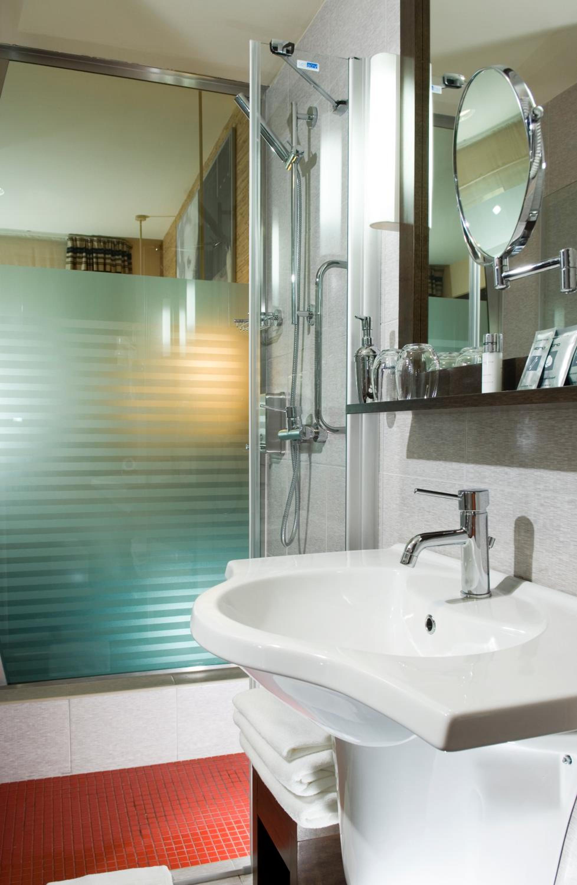 V pokoji není nějaký menší stolek. Byla pouze jen židle a dva noční stolky. V koupelně byl problém u sprchového koutu, kde dole byla díra ve skle a voda tekla ven.