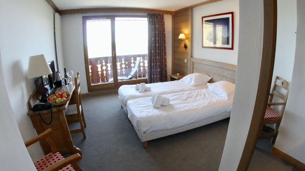 Hôtel idéalement situé au pied des pistes et du magasin Intersport pour la location des skis. Personnel charmant mais manquant un peu d'experience excepté le responsable du petit dejeuner. Petit dejeuner par ailleurs très correct dans une belle salle avec une vue magnifique sur les sommets. Chambre spacieuse d'un confort cotrespondant aux 3 étoiles. Présence appreciee d'une bouilloire. Les lits sont refaits chaque jour et les serviettes changées a la demande. Il est dommage que la maintenance soit dépassée, pannes d'électricité, fermeture de la piscine et du spa pendant trois jours, isolation phonique par rapport au couloir légère. Parking en sous- sol tres pratique.