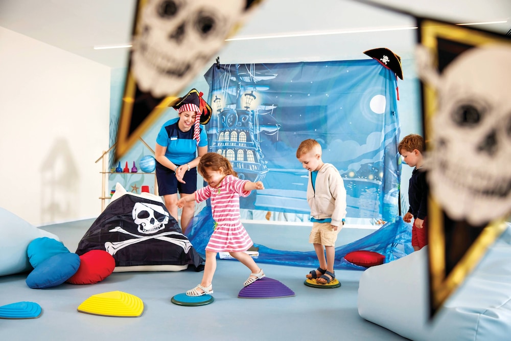 Hotellet är bra, fantastiska rum. Vi hade ett med Swim out vilket var trevligt. Mycket bra med en vuxenpool lugnt och skönt. Det som är mindre trevligt är att i resturangen (vi hade halvpension) maten är fantasiskt god och utbudet är bra MEN det vore trevligt att som vuxen någon gång kunna slippa när man äter - barn som ammas, barn som skriker,barn som gråter och barn "som kan själv" dvs tar mat tappar tallriken, springer i restaurangen och där föräldrar har ingen styrsel på dem. Vi var ett sällskap på 5 personer alla vuxna och vi var rätt trötta på att hela tiden hålla koll runt fötterna när man hämtade mat. Samt att vore trevligt att kunna sitta ner och prata i lugn och ro utan barn runt omkring. En separat vuxendel och barndel i restaurangen vore toppen. Men annars är det ett toppenställe.