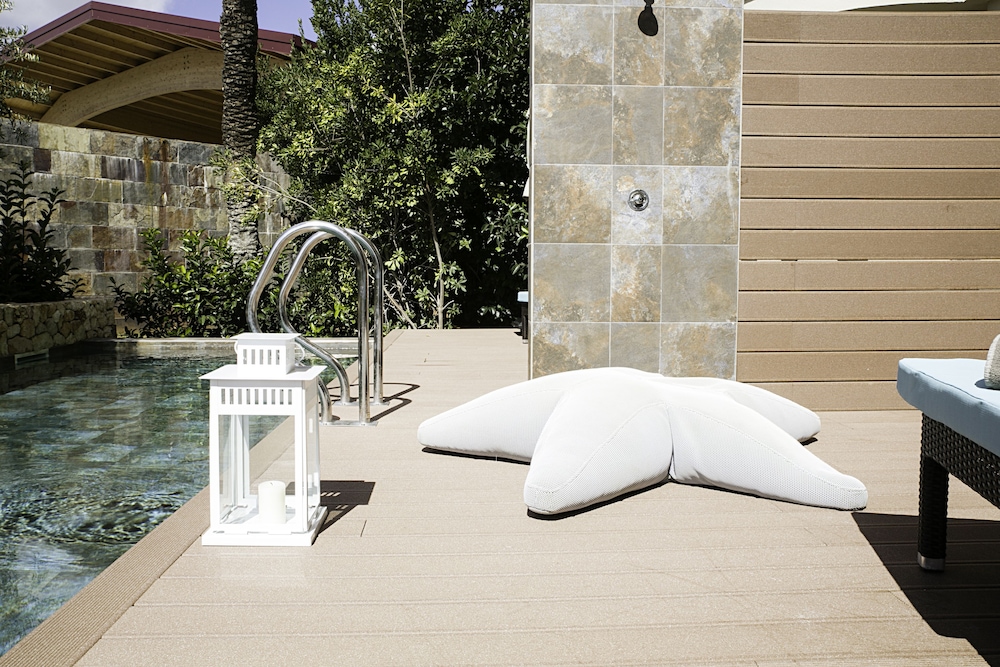 Vi boede på værelse med Swim up pool. Man deler pool med 4 andre lejligheder (vi havde den dog for os). Kunne godt ønske mere privatliv ved egen pool, men der er en lav hæk ud til vejen, så fodgængere kan se ind og der var stor trafik med håndværkere lige foran poolen.