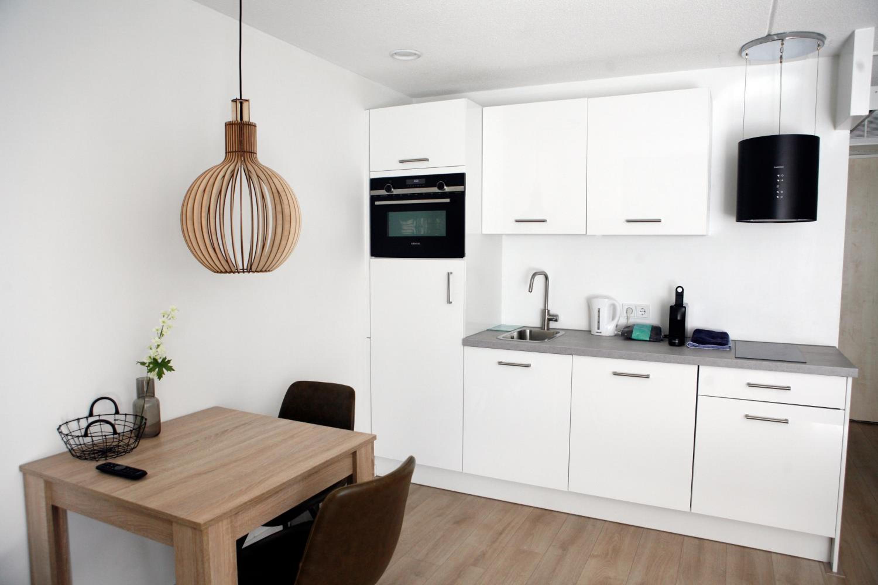 Spacious apartment with a separate bedroom and 2 balconies. Everything you need is there (not a washing machine, which I didn't need). Plenty of parking. Groesbeek is a very quaint and quiet village in the country side, very close to Nijmegen. Lots of shops nearby. Great bakery on the main street next to Kruitvat.