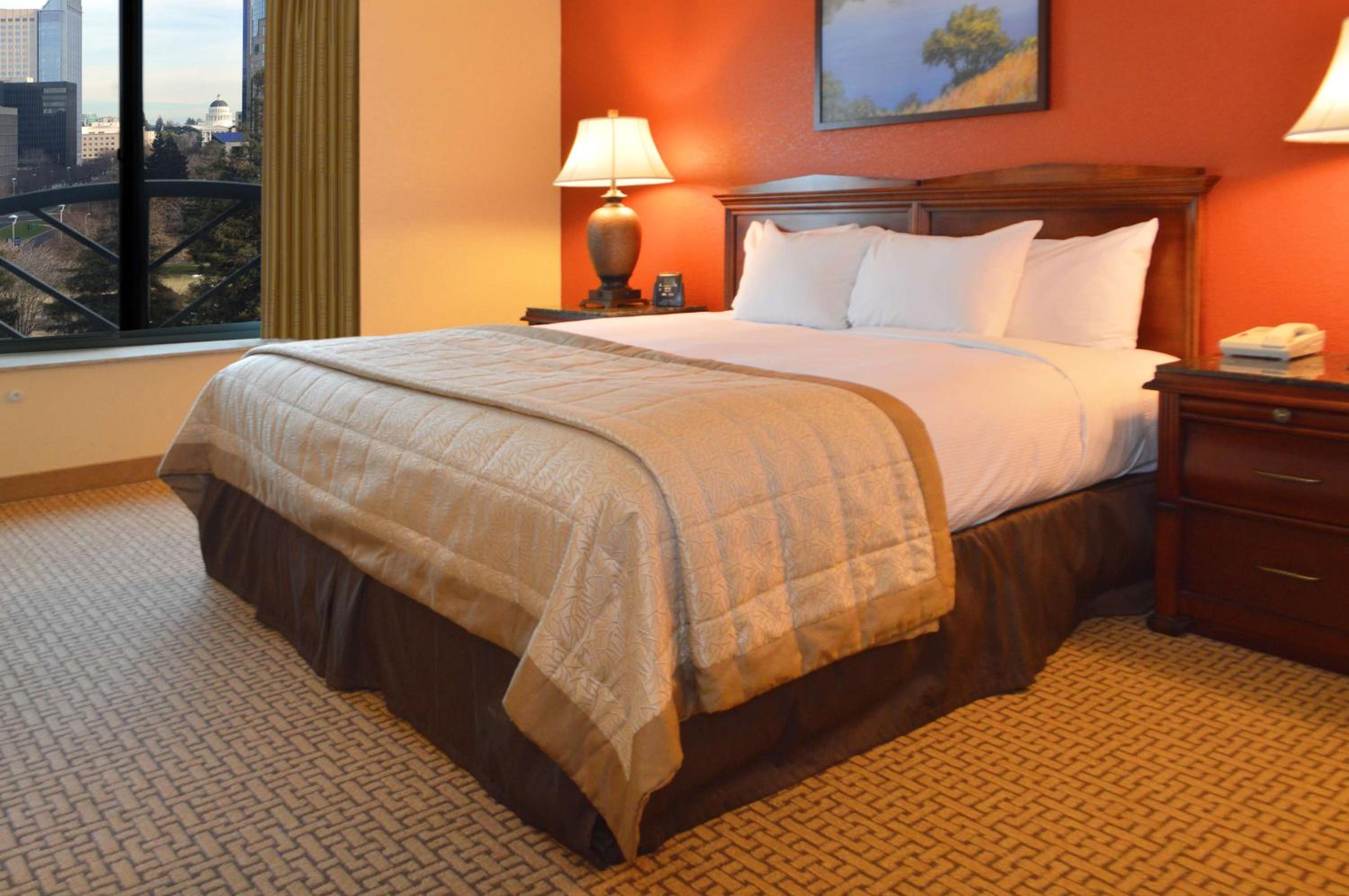 Located on the Sacramento River, Embassy Suites by Hilton Sacramento Riverfront Promenade offers spacious 2-room suites with separate living areas, perfect for a comfortable stay.
