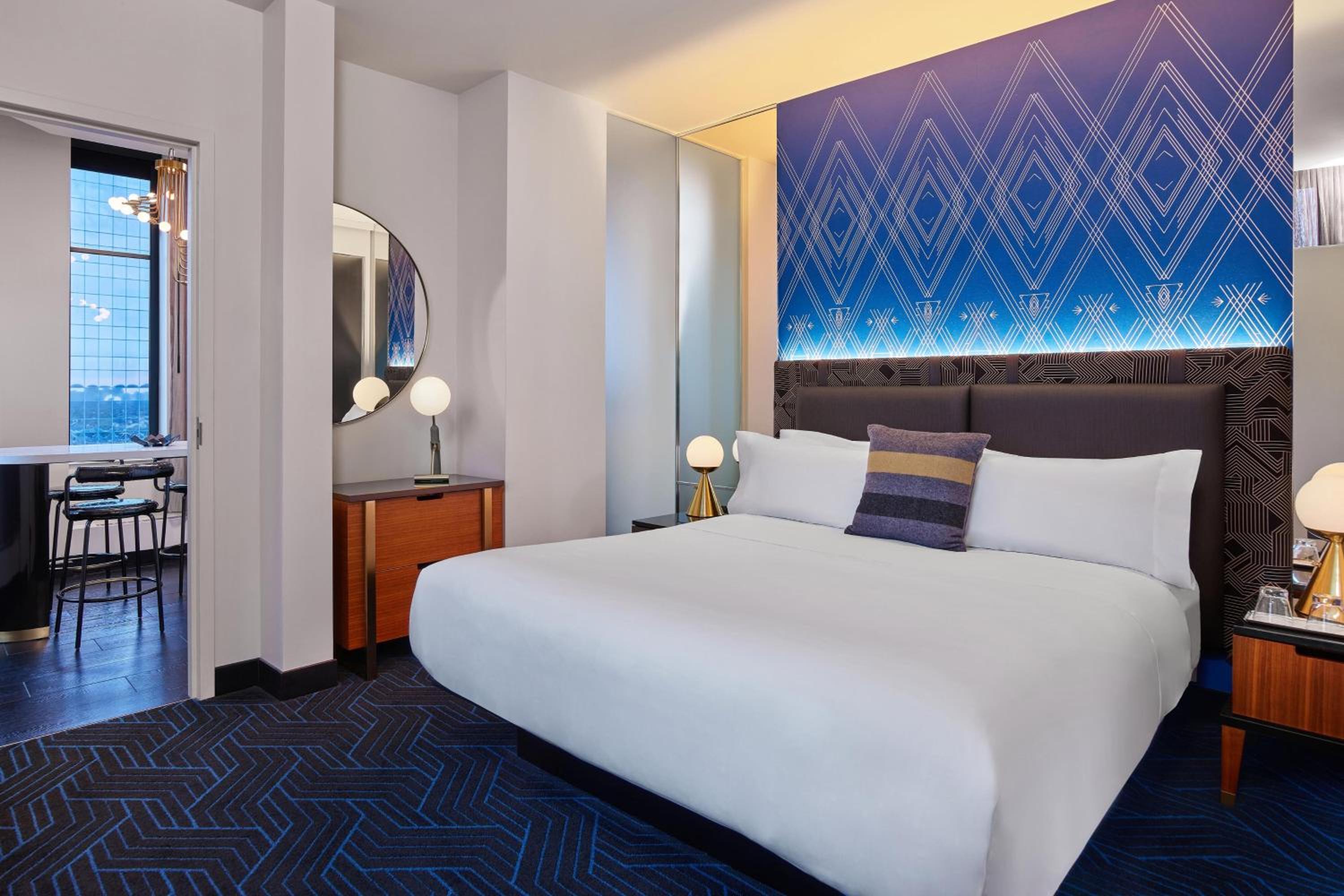 Beautiful, historic building. The lobby is on the smaller side with a bar and restaurant taking up most of the first floor space but it is lovely. We were treated promptly and found out that we had been upgraded to a larger suite - we had booked the Fantastic Suite and got to stay on the 24th floor in the Magnificent Suite. It is very large. Sadly, the couch wasn't very comfortable, but it looks amazing. The view is incredible. The bathroom was large and luxurious. The robes were a little stiff rather than soft. The black-out blinds were wonderful for sleeping in. We could hear some sirens but didn't hear any other noise. The mattress was very comfortable. We didn't want to pay $60 for valet parking so we used the garage. Sadly, the interior connection is closed, so you do have to walk outside for about 20 feet if you do that. It saved about $40 so we thought it was worth it. We enjoyed going up to the observatory, which actually has an open balcony. The speakeasy was really busy so we didn't stay but looked fun.