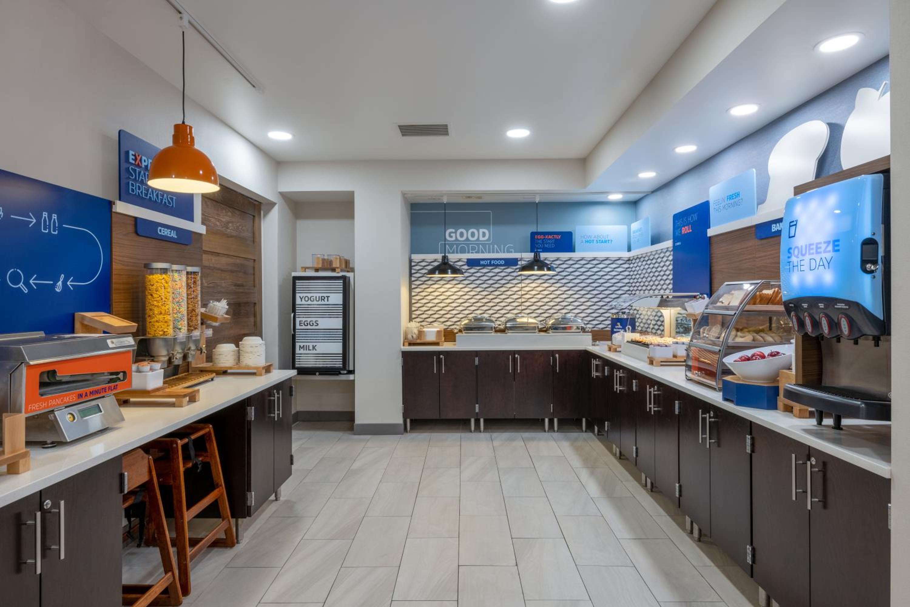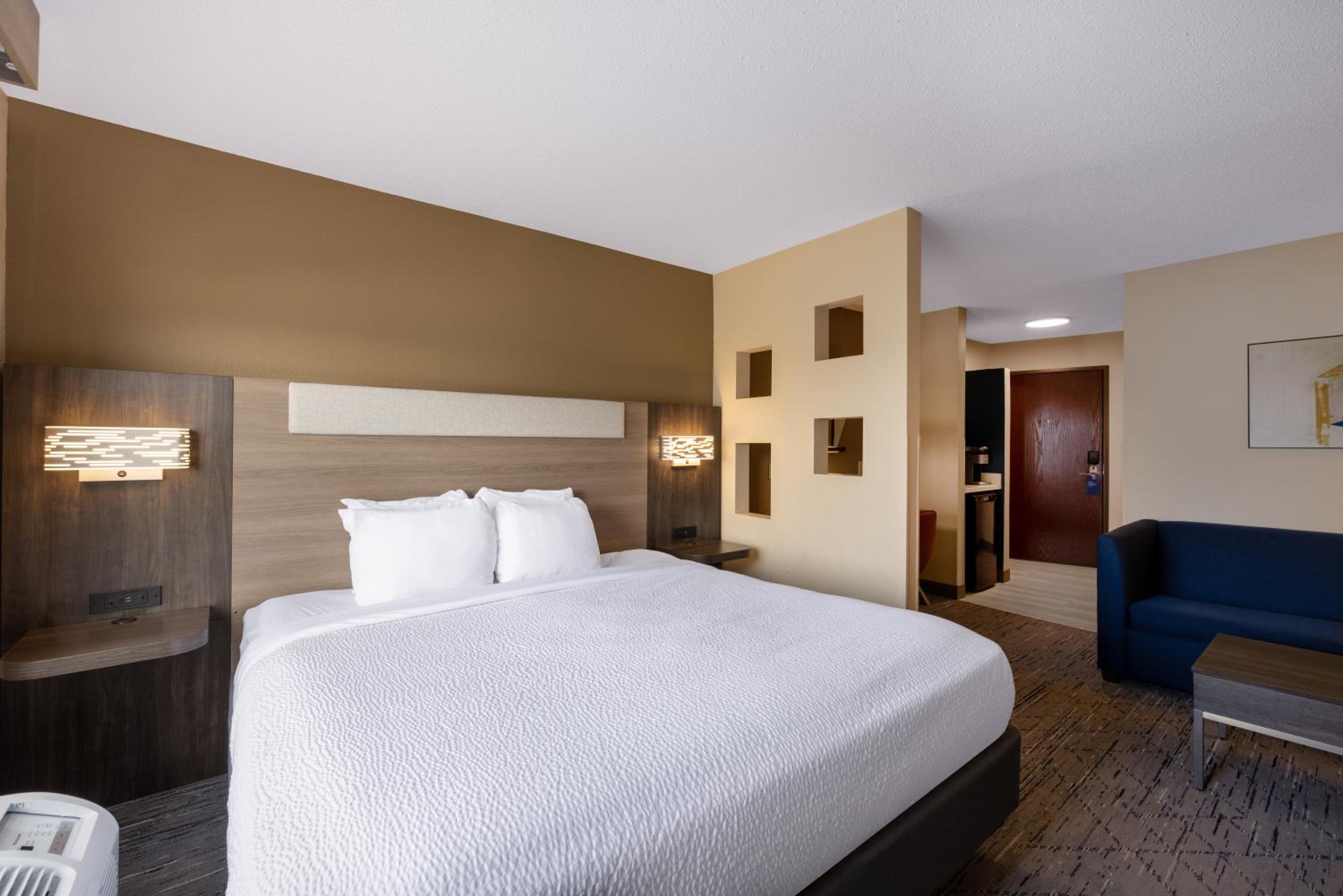 The rooms were spacious, staff was super friendly and helpful when we had a little hiccup with our room and breakfast was great! Lots of great offerings and the coffee was delicious! Super clean facility and very friendly staff.