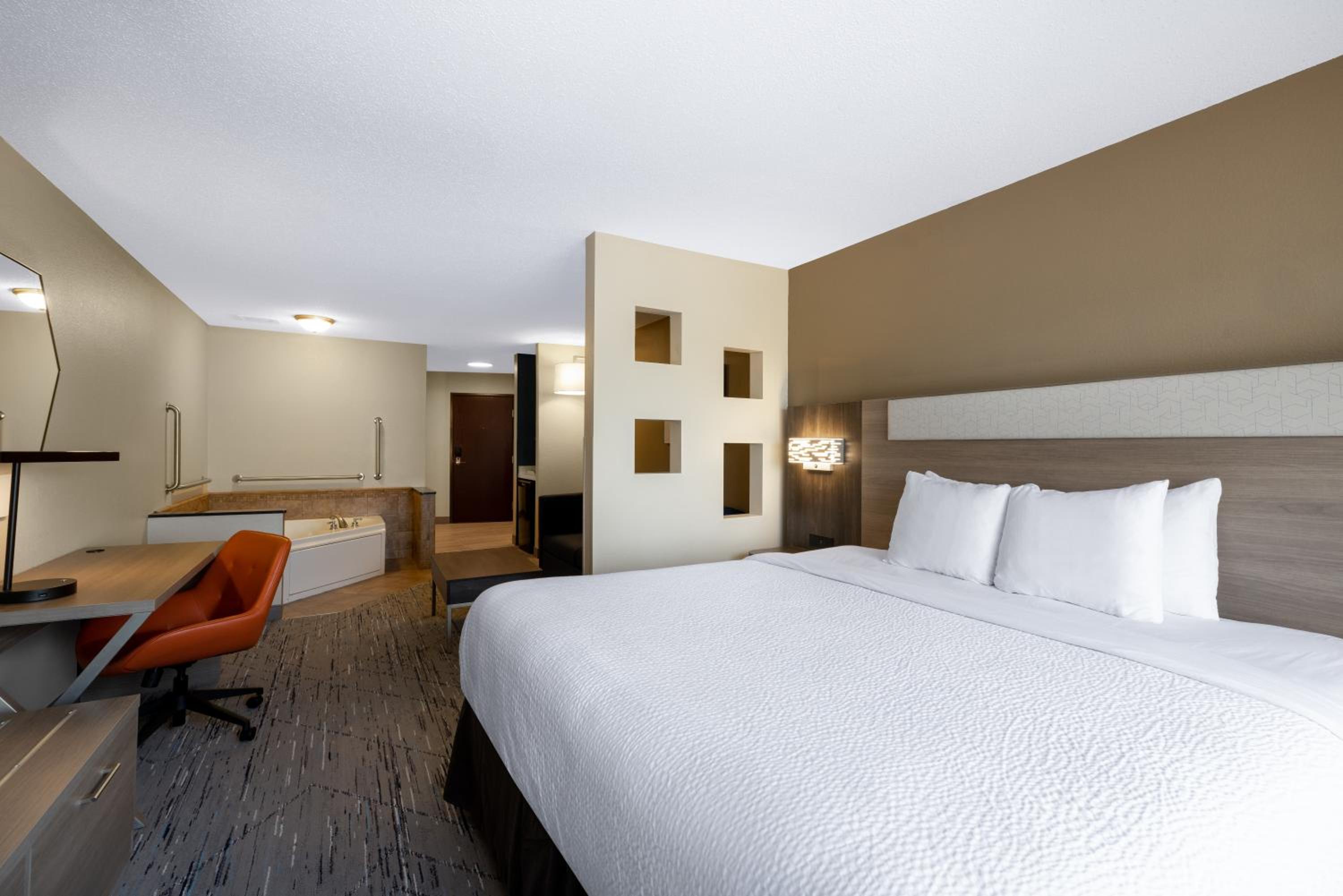 While the room was spacious, cleanliness was an issue with food splatter on the wall, hot water that took 10 mins plus to warm up and hair in the tub. The biggest disappointment was paying for a Jacuzzi suite we couldn’t use because it was missing parts. Breakfast was minimal. Shuttle service was inconsistent—one driver was very kind, but the return driver was distracted on his phone and driving unsafely.