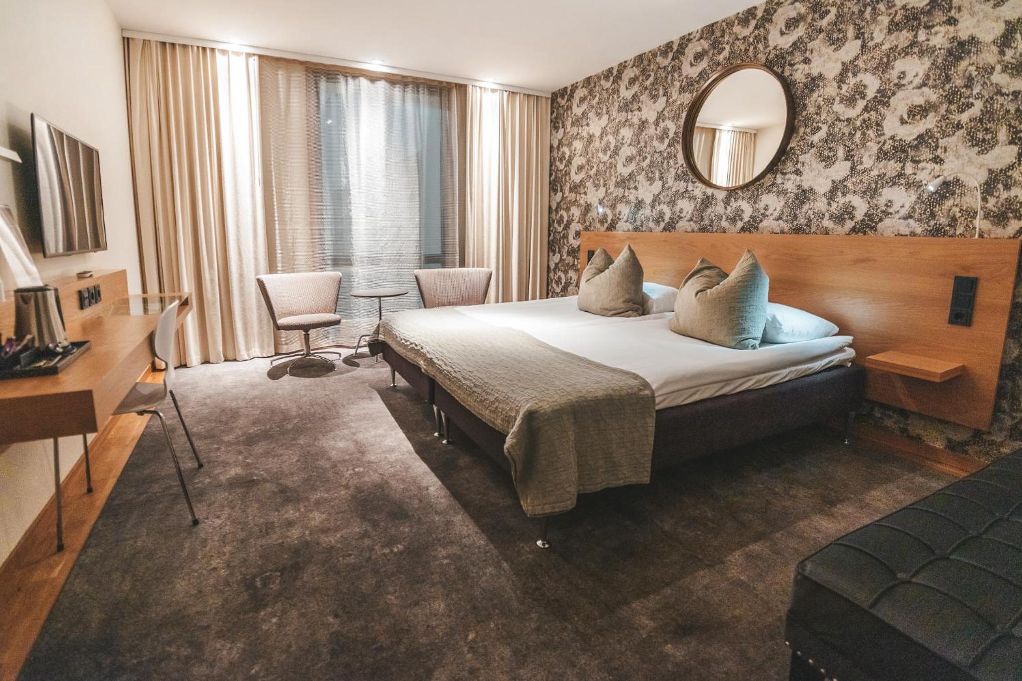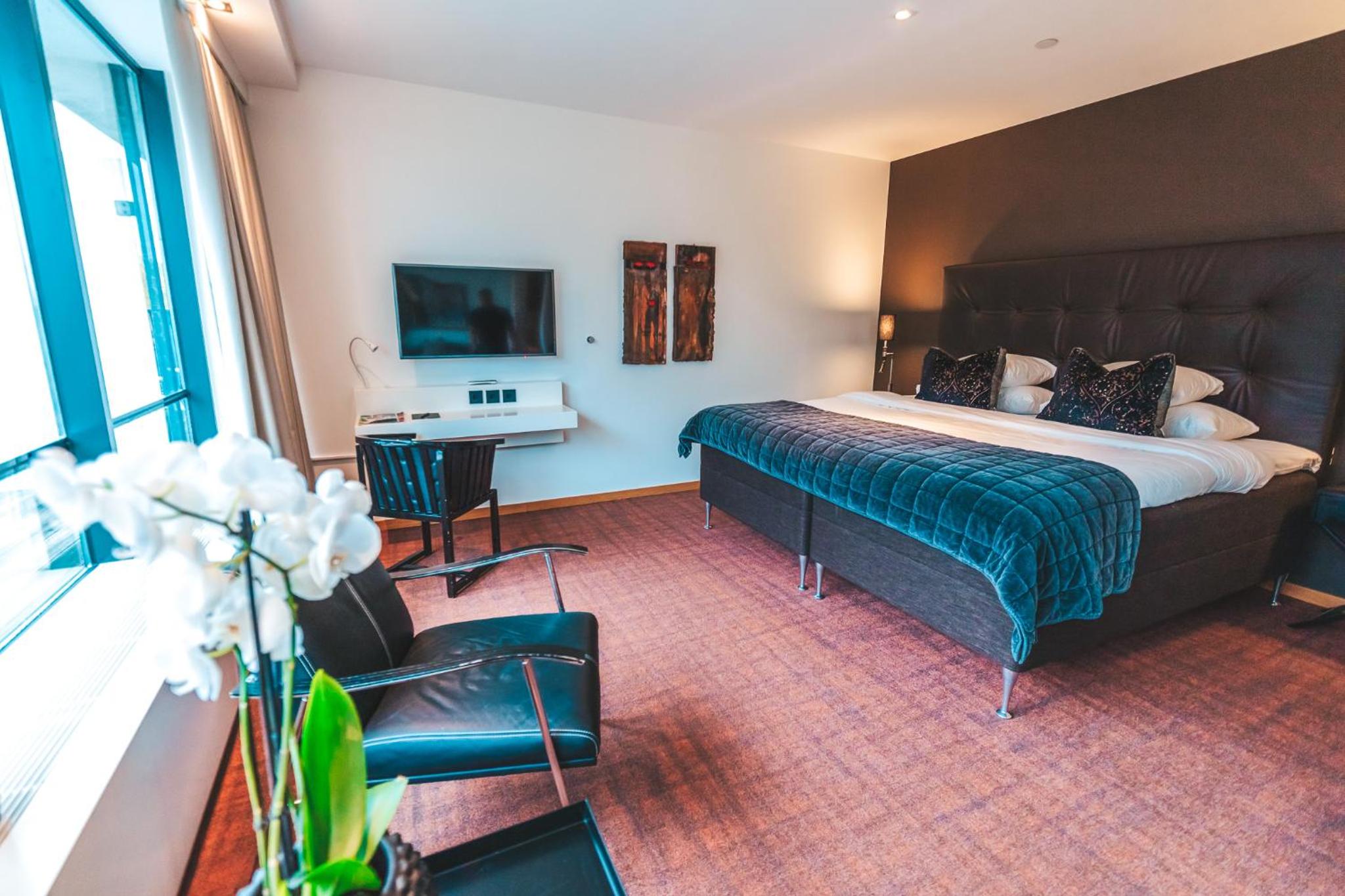 Each of our uniquely designed rooms at Sankt Jörgen Park offers complimentary WiFi and a flat-screen TV, ensuring a comfortable stay with all the modern conveniences you need.