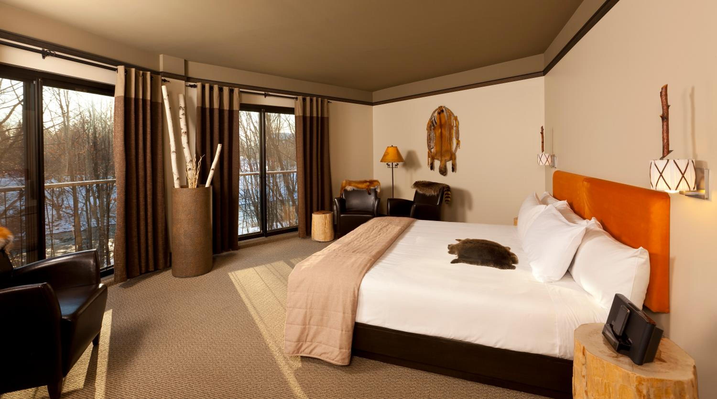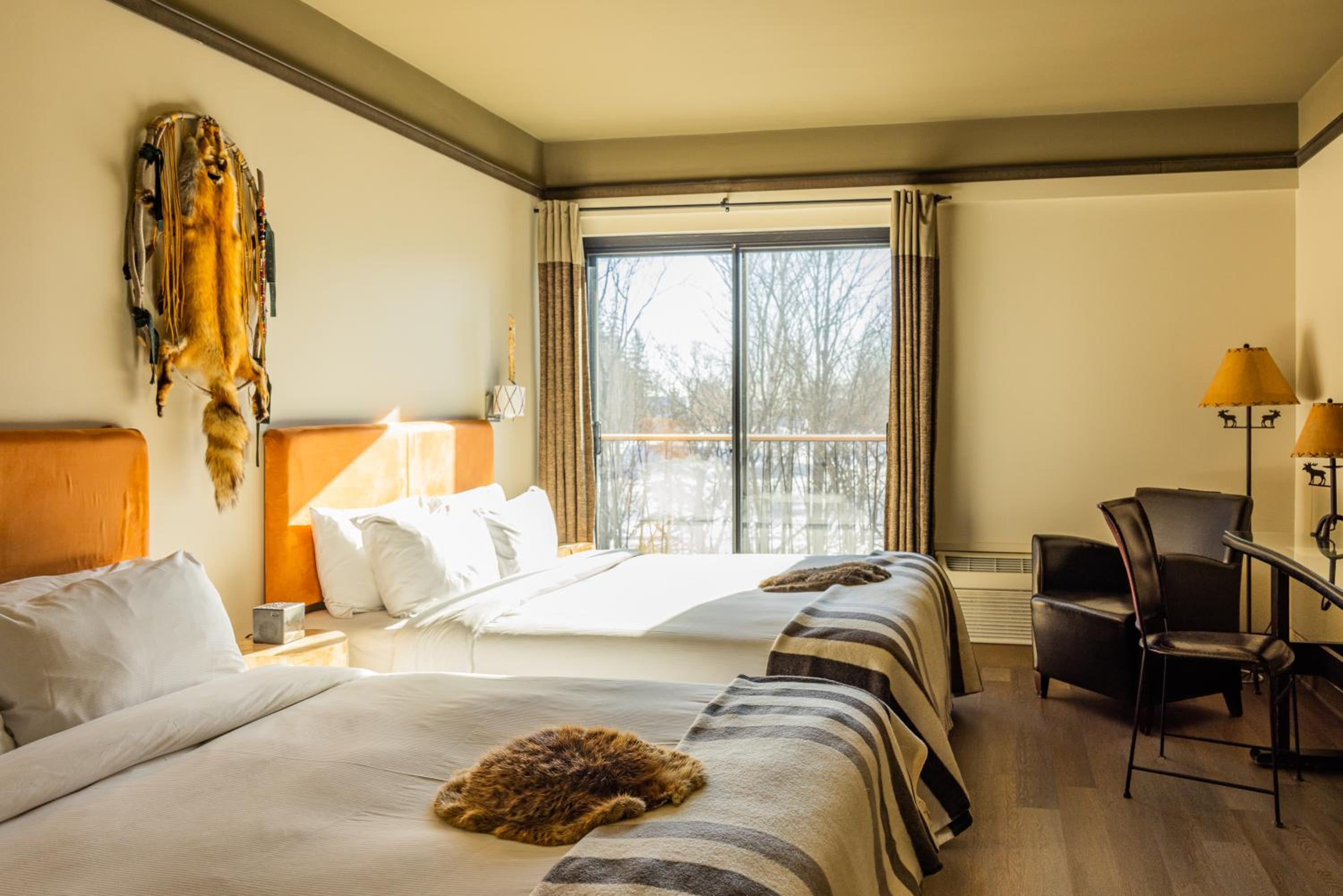 chambre magnifiquement décorée et spacieuse, lits très confortables, hôtel situé au coeur du village indien Wendake