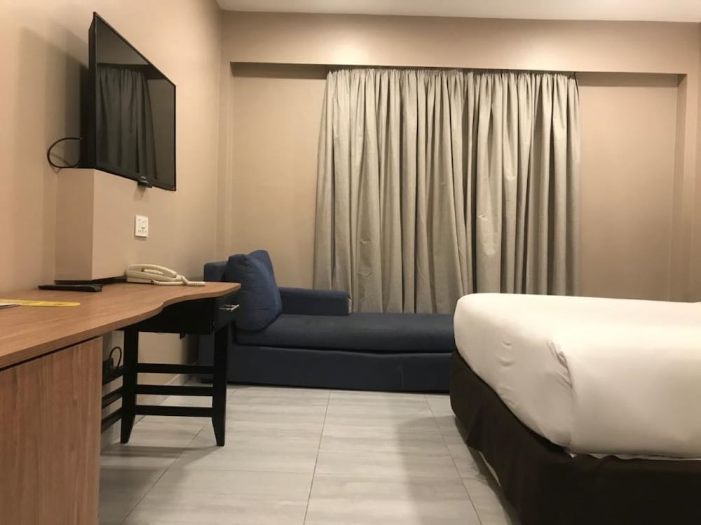 Friendly service but rooms were jaded and in need of upgrade. Approached by hookers on the terrace (in front of staff). Twin room, not queen bed. Helpful airport transfer. Breakfast adequate. Just needs a lot of upgrading to meet the rather hefty single night hotel charge.
