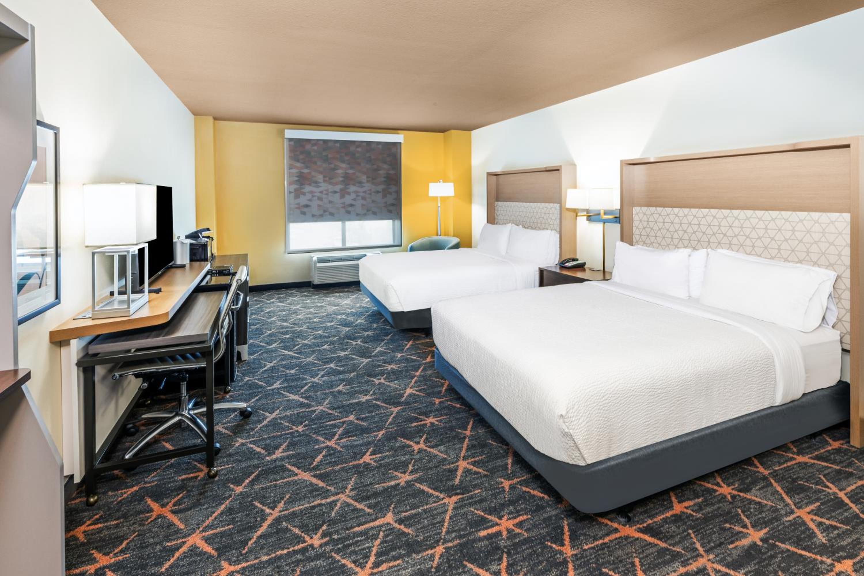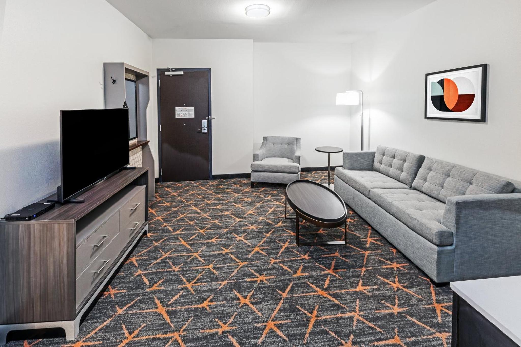 Each guest room at Holiday Inn & Suites Stillwater-University West features modern comforts such as a flat-screen TV, air conditioning, and cozy bedding, ensuring a comfortable stay for all guests.