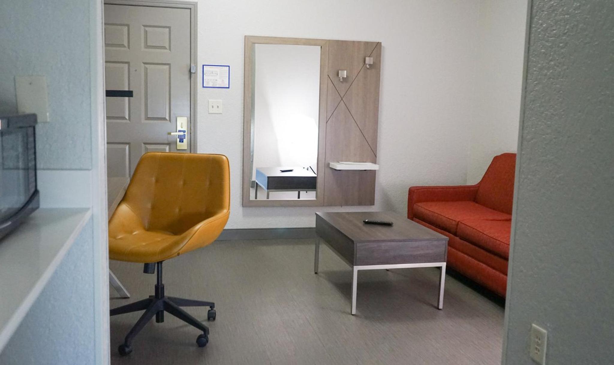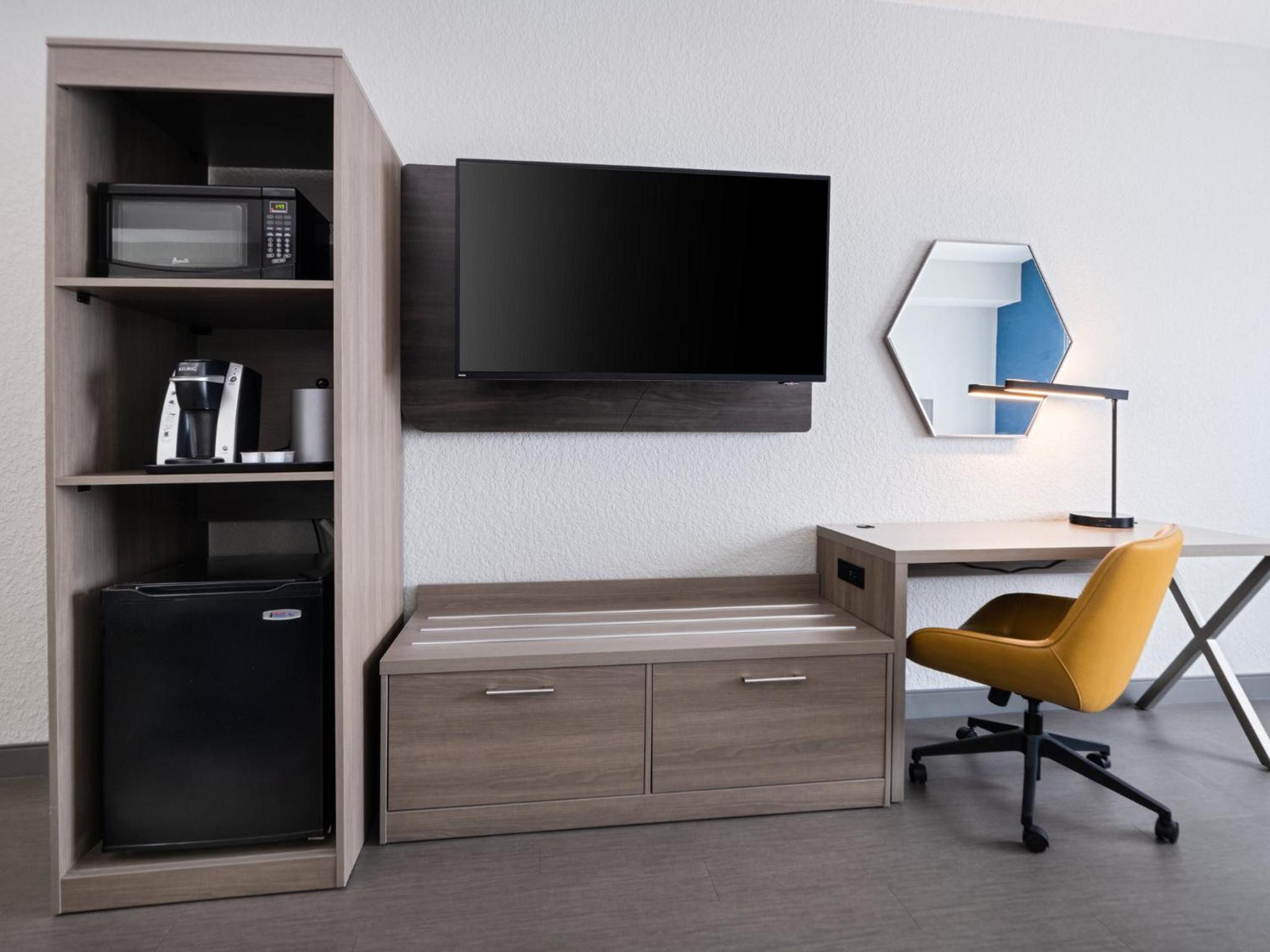 Checked in and went to my room no furniture, just a bed. I can’t believe Holiday Inn did it away with furniture in a room. Ask the girl at the desk. She didn’t know nothing she says that’s the way the rooms come very surprised.