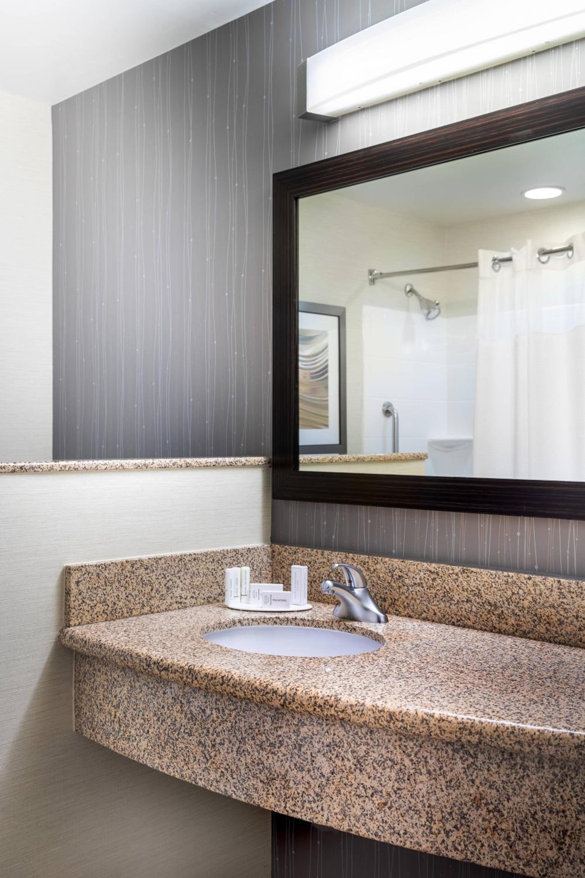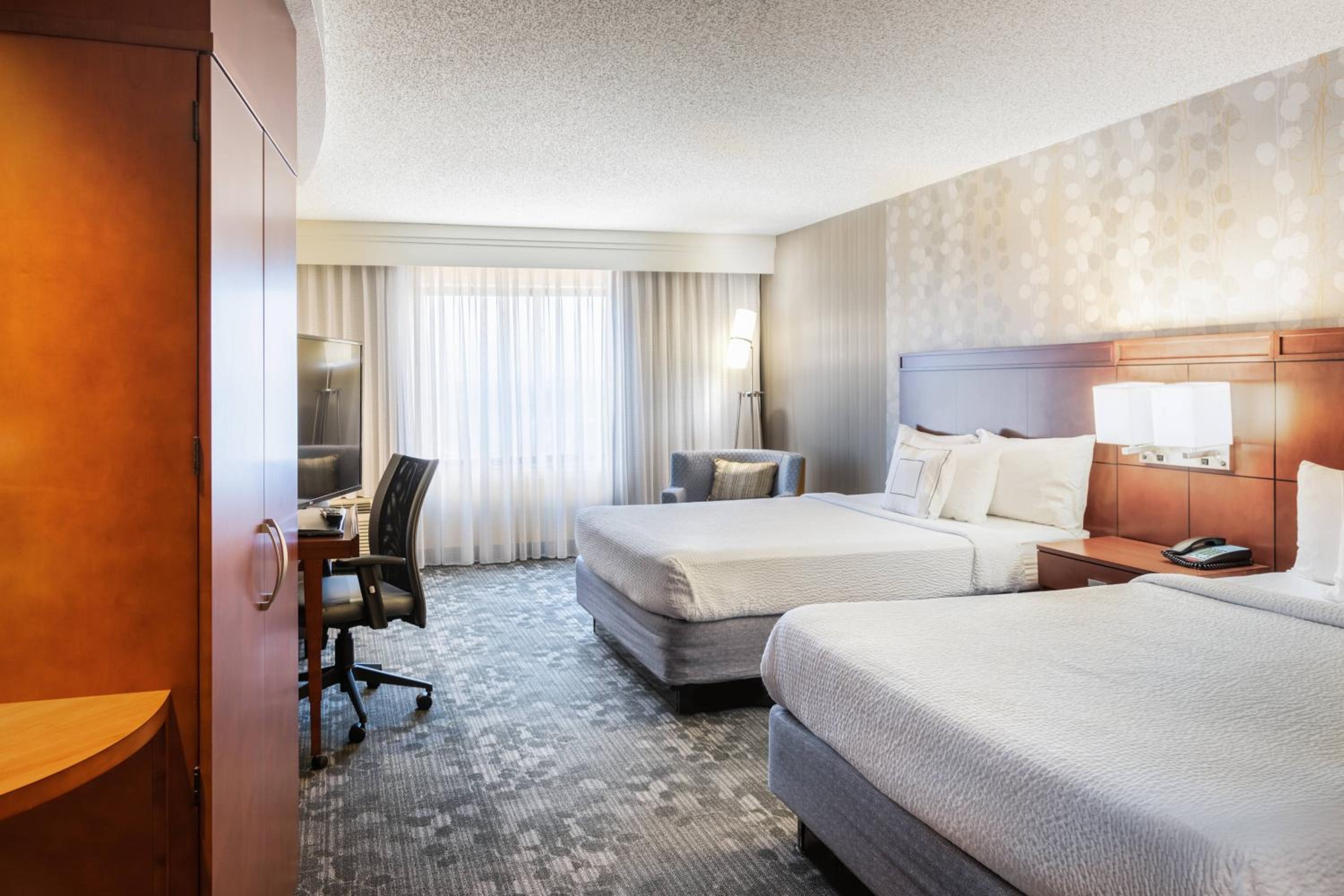 Experience comfort and convenience in our modern rooms at Courtyard by Marriott Denton. Each room is equipped with a fridge, microwave, and ergonomic work space.