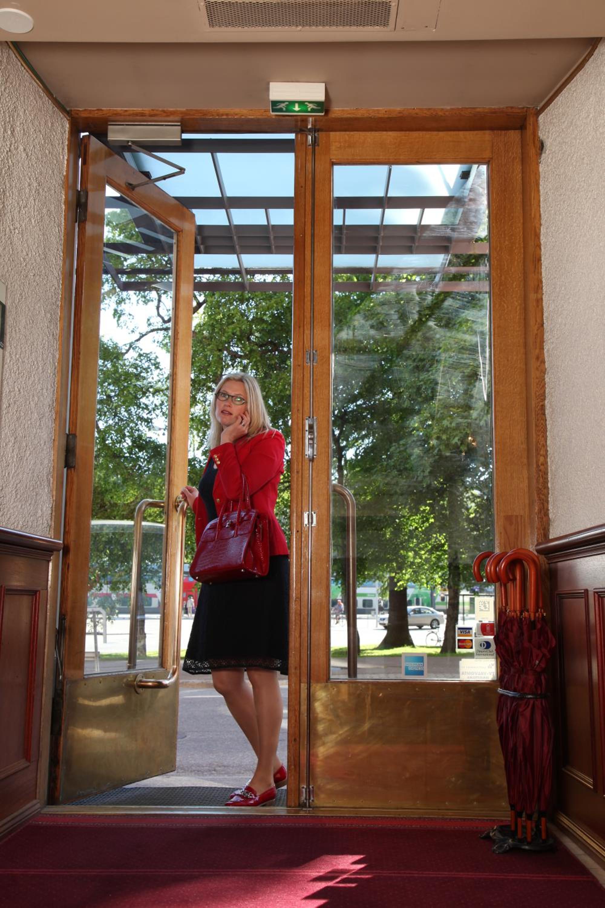 Huone oli tilava ja sinäänsä viehättävä, kalustettu "vanhan ajan" tyyliin tummilla puukalusteilla ja muhkeilla nojatuoleilla.