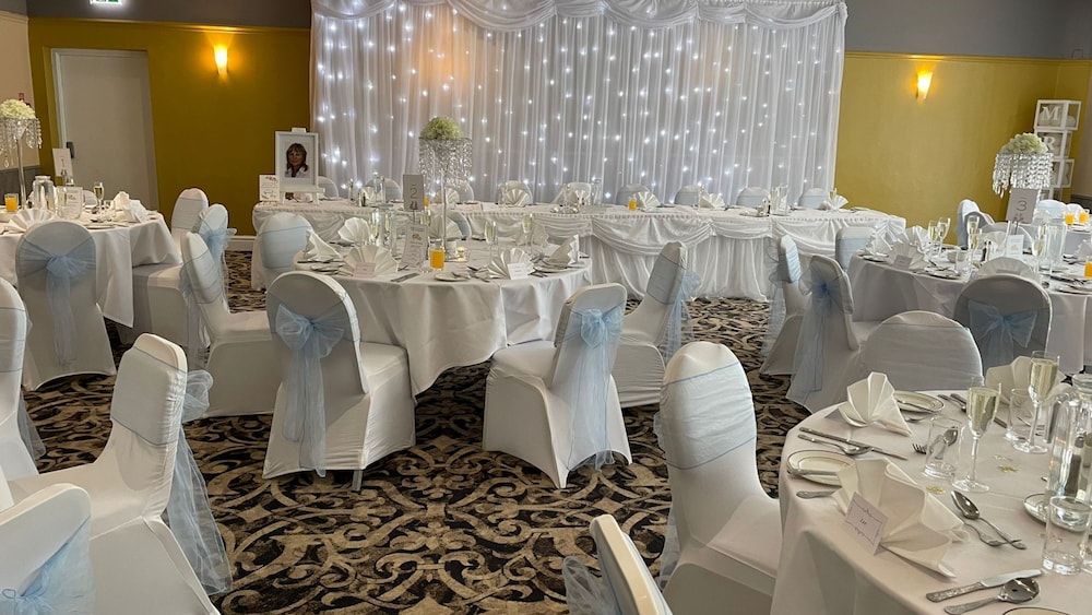 Wedding on so normal guest evening dinner was held in a meeting room?!Completely disorganised, 3 courses took 2 hours. Food cold but didnt dare complain as the waiter was absolutely terrible and it took long enough as it was. Menu extremely limited for those on half board - all winter dishes in summer. Sitting on conference furniture, in a very dark conference room whilst the wedding took over the actual restaurant that we had all paid to use.