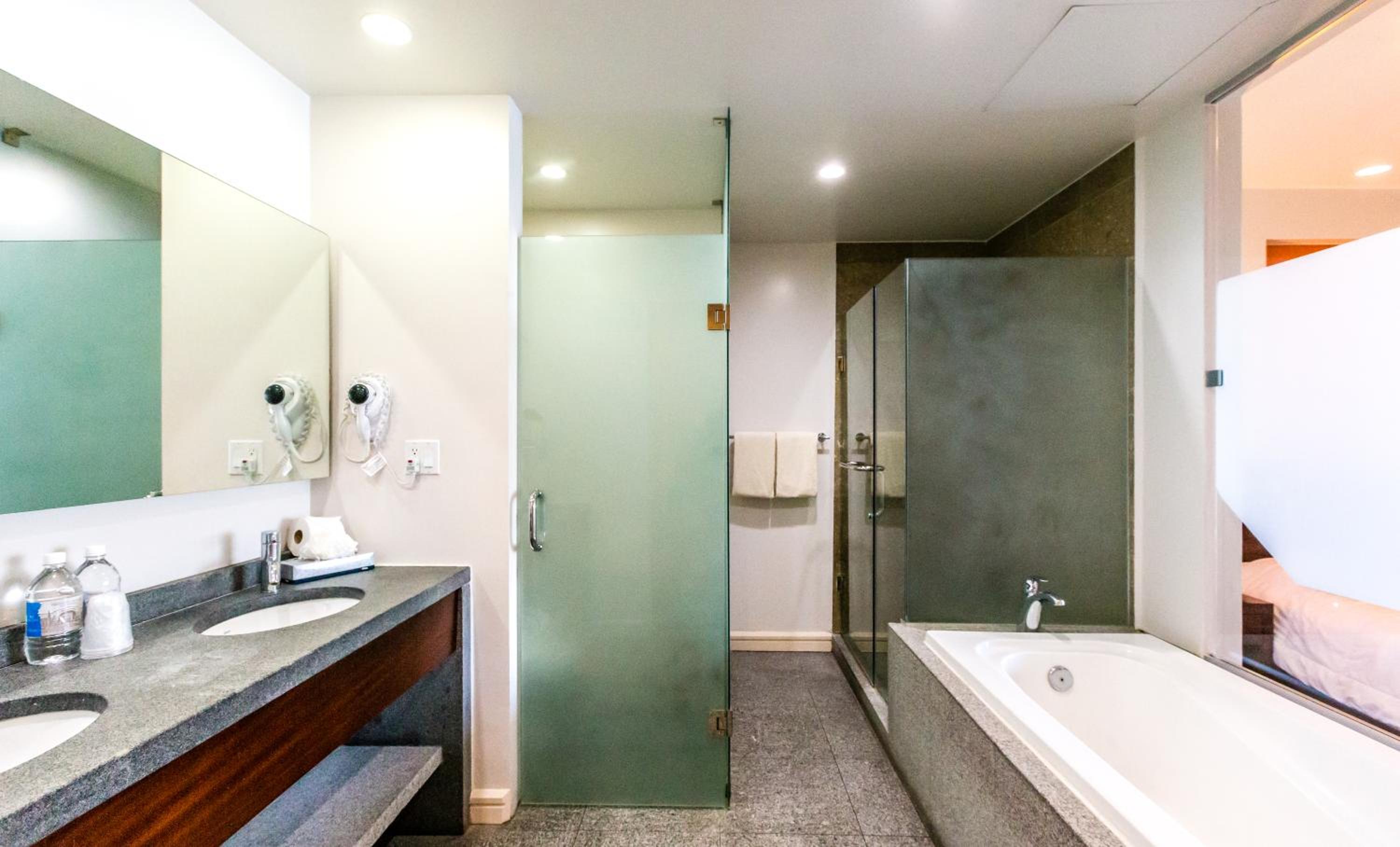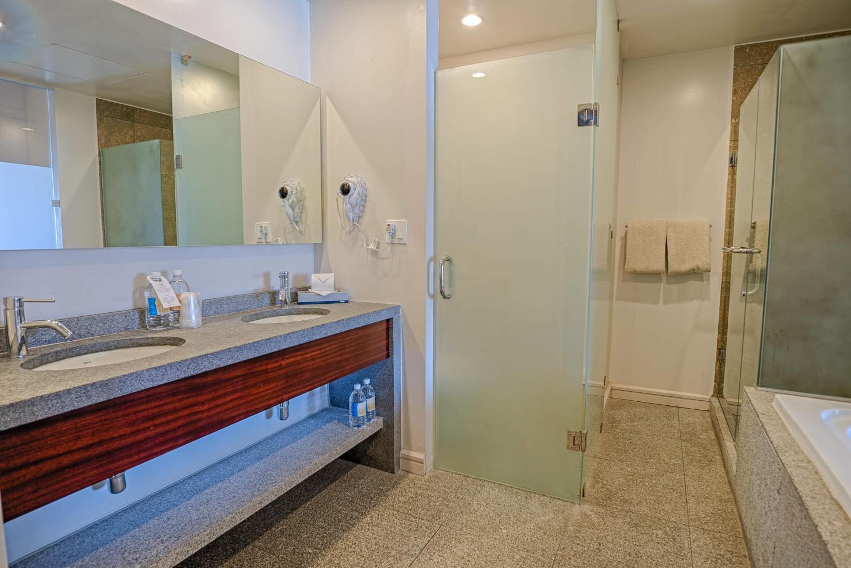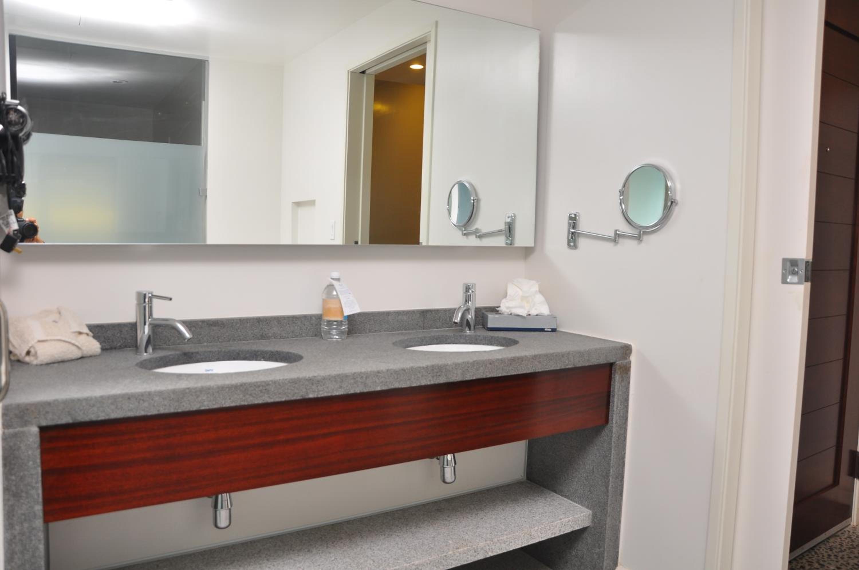 Rooms were clean and very nice. A big issue here is that only two elevators work with one broken down. The elevator for parking lot is also broken down. We did not get any water bottles neither. The pools were nice but we had no waiter help us on the pacific tower side. We actually had to move to the other pool in order to get served. Place is nice but little details can be improved.