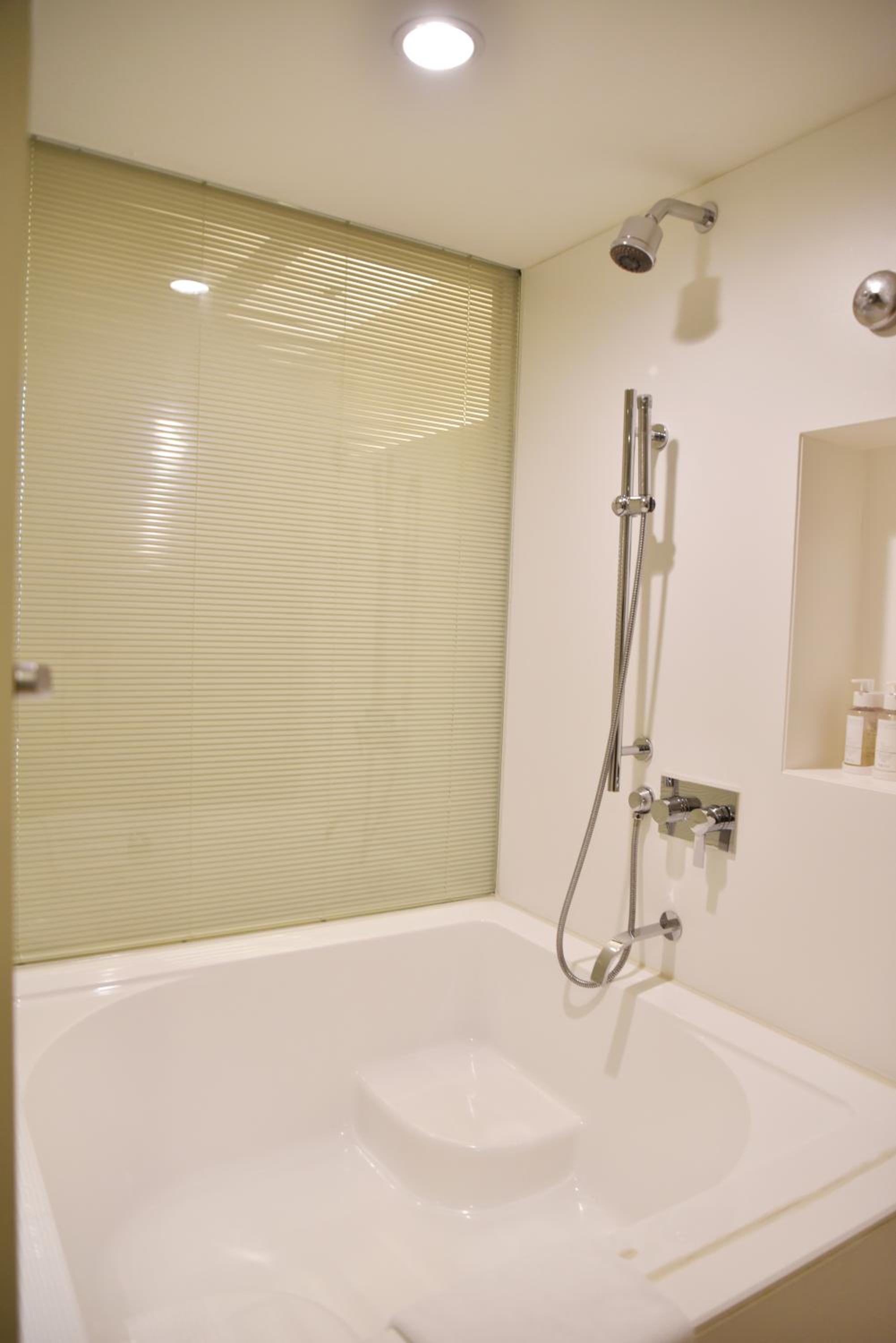 Bathtub had a weird setup which determined usage of a curtain, rather than a glass door and the bathtub surface was slippery - they had an info sign for that though.
