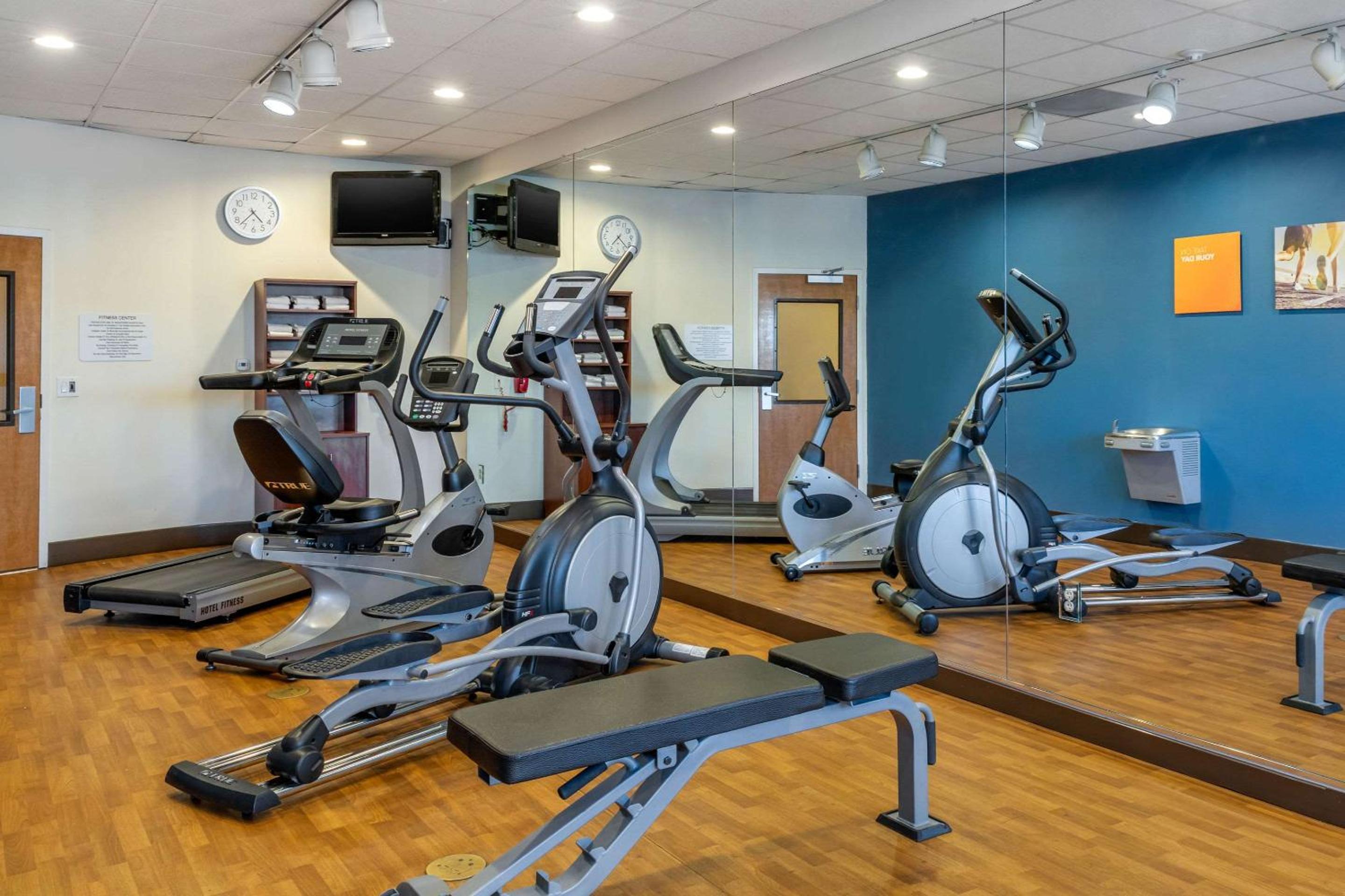 Kickstart your day with our complimentary hot breakfast offering delicious options like waffles and local favorites. Stay active at our fitness center or unwind in the heated outdoor pool.