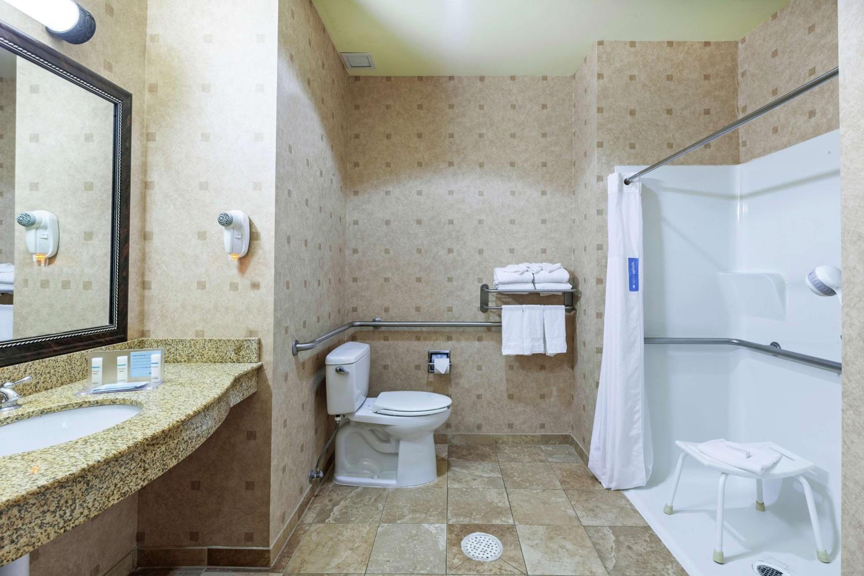 All areas (lobby, hall, and room) were freezing as temps had dropped to near freezing. I requested two of the comforters (heavy blankets) so that I could make sure our child stayed warm and the overnight clerk said they couldn’t provide then heavy ones just the light blankets.