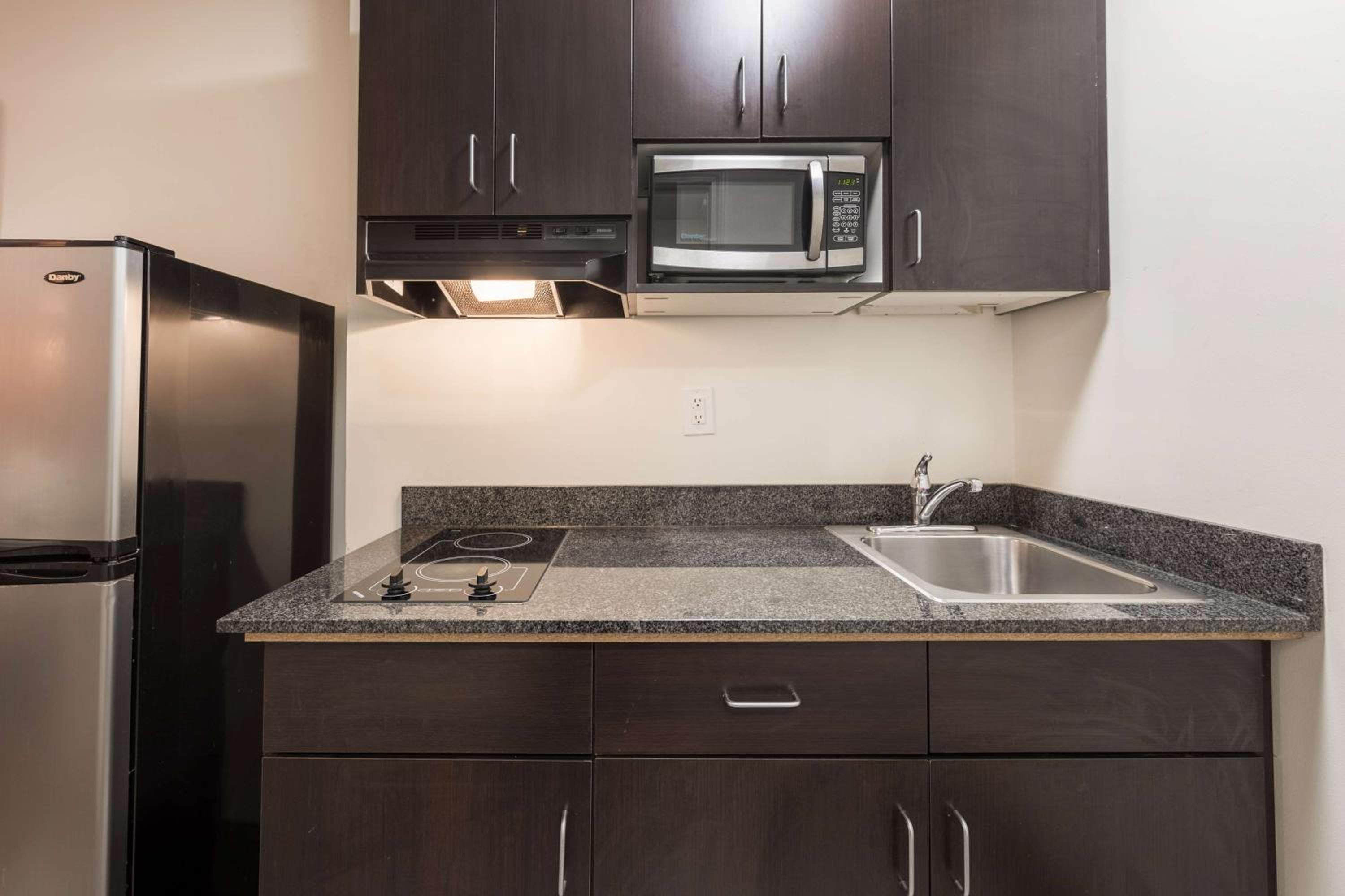 Unwind in our well-equipped rooms featuring a flat-screen TV, refrigerator, coffee maker, and microwave. Select rooms even come with a convenient kitchenette, giving you the flexibility to prepare your own meals during your stay.