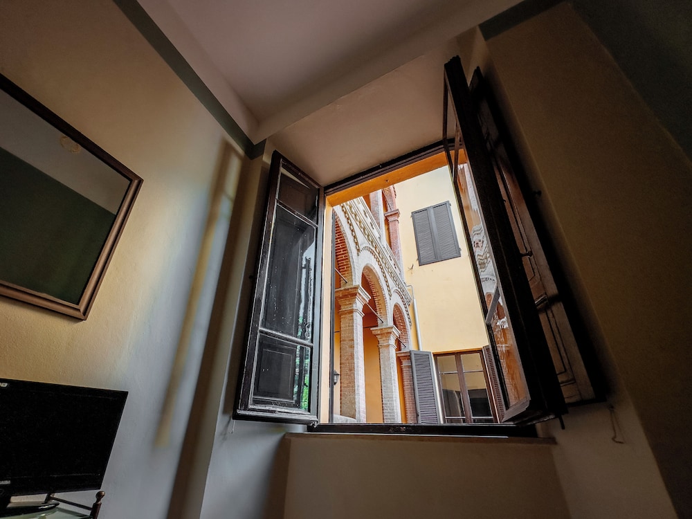 Fuori dalla finestra i piccioni che picchiettano alla finestra. Le finestre sono senza persiane, ma con tende oscuranti sporche che non oscurano completamente, quindi ti svegli quando esce il sole.