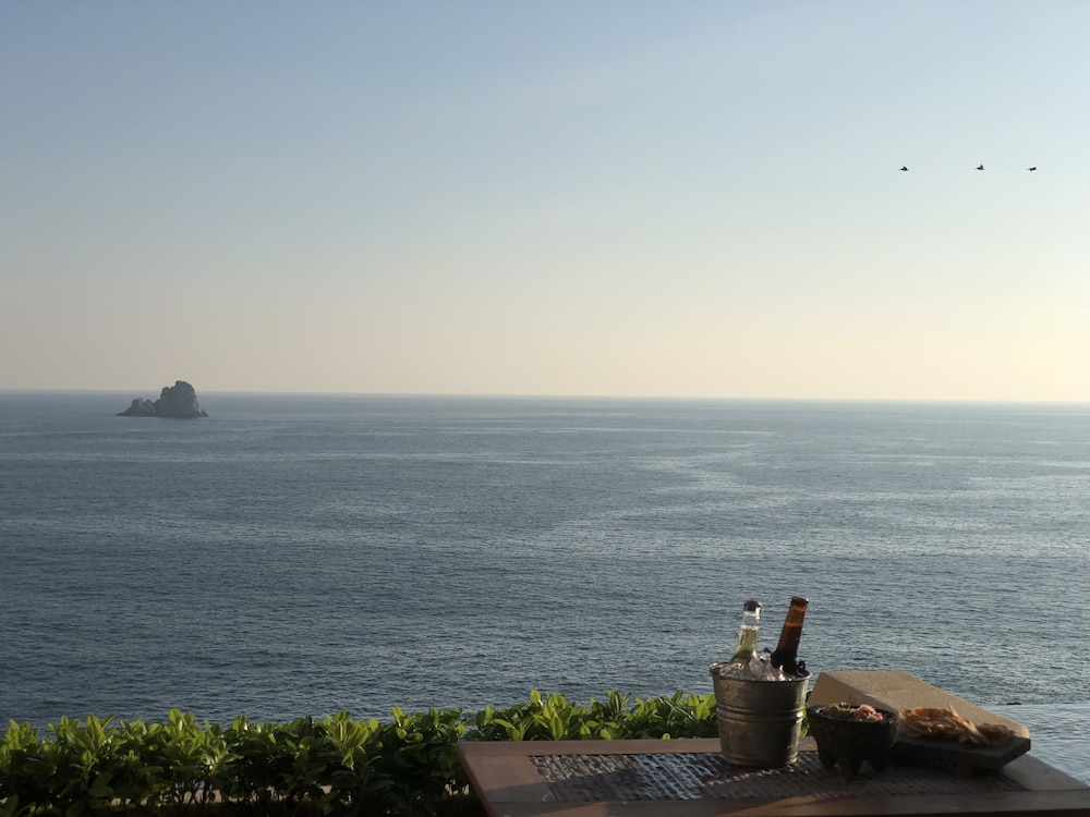 Beautiful setting overlooking a rocky Pacific coast. Good rooms and suites (try a family suite). Two pools. Even when full seems quite quiet. Friendly service. Restaurant capacity not quite up to rest of offer. Service is friendly but often slow. Breakfast and lunch offering good. Dinner offering limited to two restaurants (fish and mexican) and would get a bit tired if here fit a long stay. (For four nights was fine). Bear in mind not good for those with mobility issues (lots of steps) or toddlers/small children (funicular lifts would be a big of a nightmare). But mostly a very good report - for adults a great place to relax, lie in sun and eat well. Less than an hour’s flight from Mexico City so a great add on.