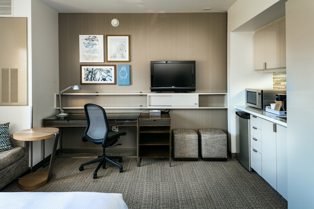 Very convenient location for a family friend reunion. I have always been impressed by the Element brand, but this location looks tired and dingy, and the room layout was off putting. There was an L shaped desk very inconveniently protruding from the wall in the middle of the room. So many bruises. Not sure why the rooms need such a large fridge either. Would have preferred better bathroom storage.