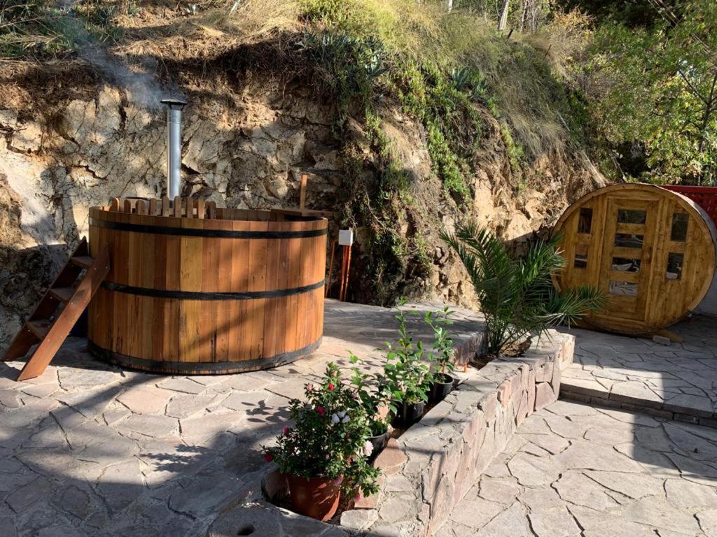 Der Pool draussen, das schöne Zimmer. Es ist außerhalb der Stadt gelegen, eher ruhig.